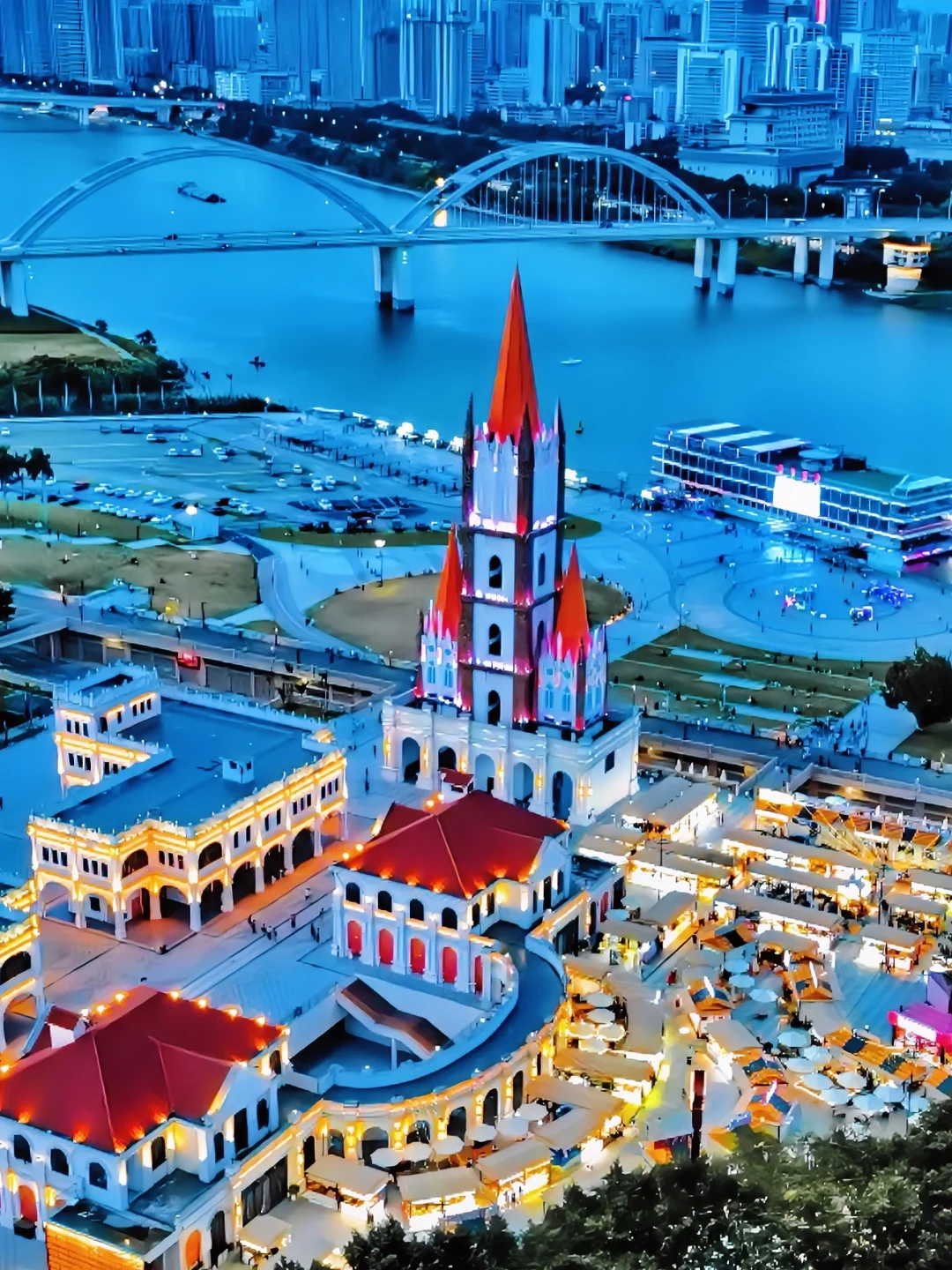 亭子码头独特的欧式风格建筑,仿佛来到了欧洲的布拉格广场。每到夜晚,这里成了热闹的夜市,很多好吃的