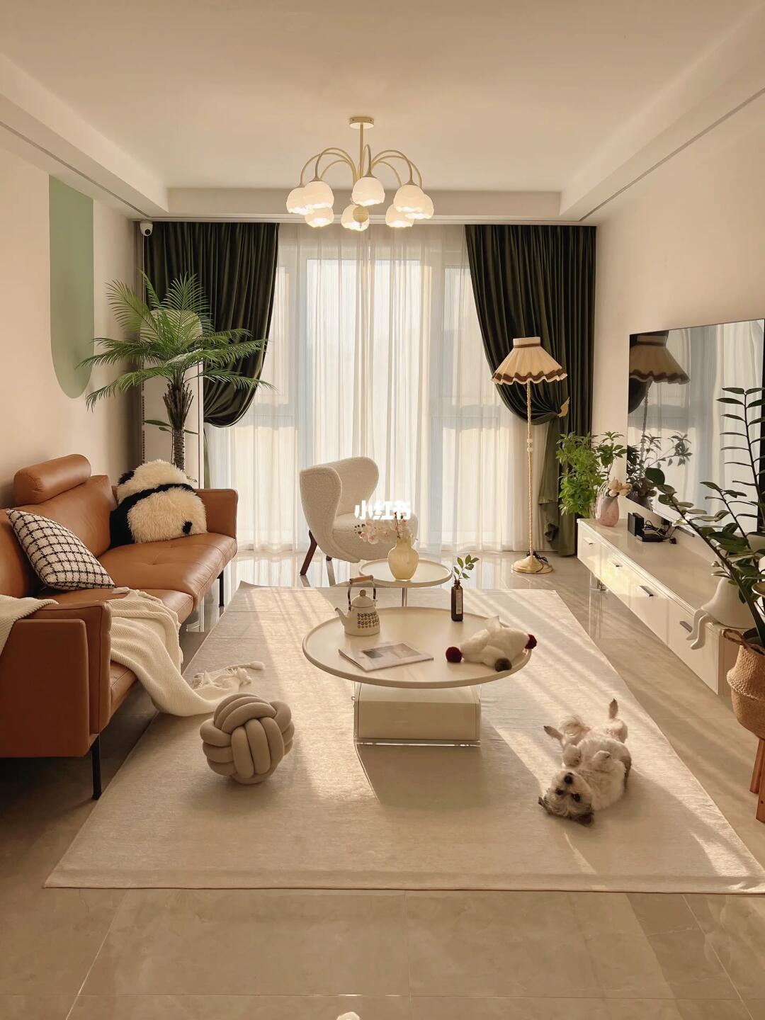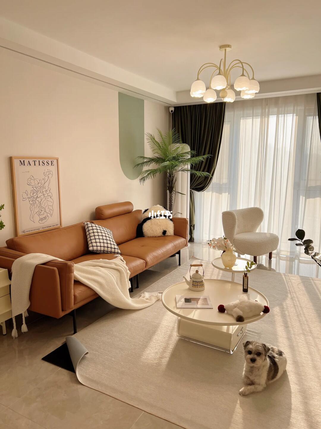 我家做软装时候我首先确定想要温馨一点,有点生活气息,最后选了棕色和复古绿搭配