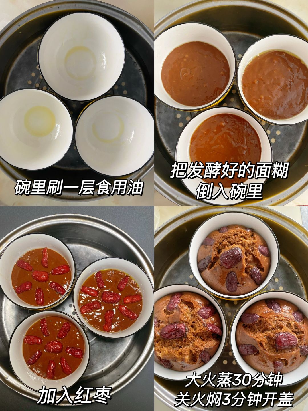 红糖发糕也太简单了 在家就能做出来 暄软好吃! 具体做法看图⬆️ ps:发酵时间大概4h,具体看情况,至蜂窝状就可以啦,蒸之前搅拌排气,再加入碗里