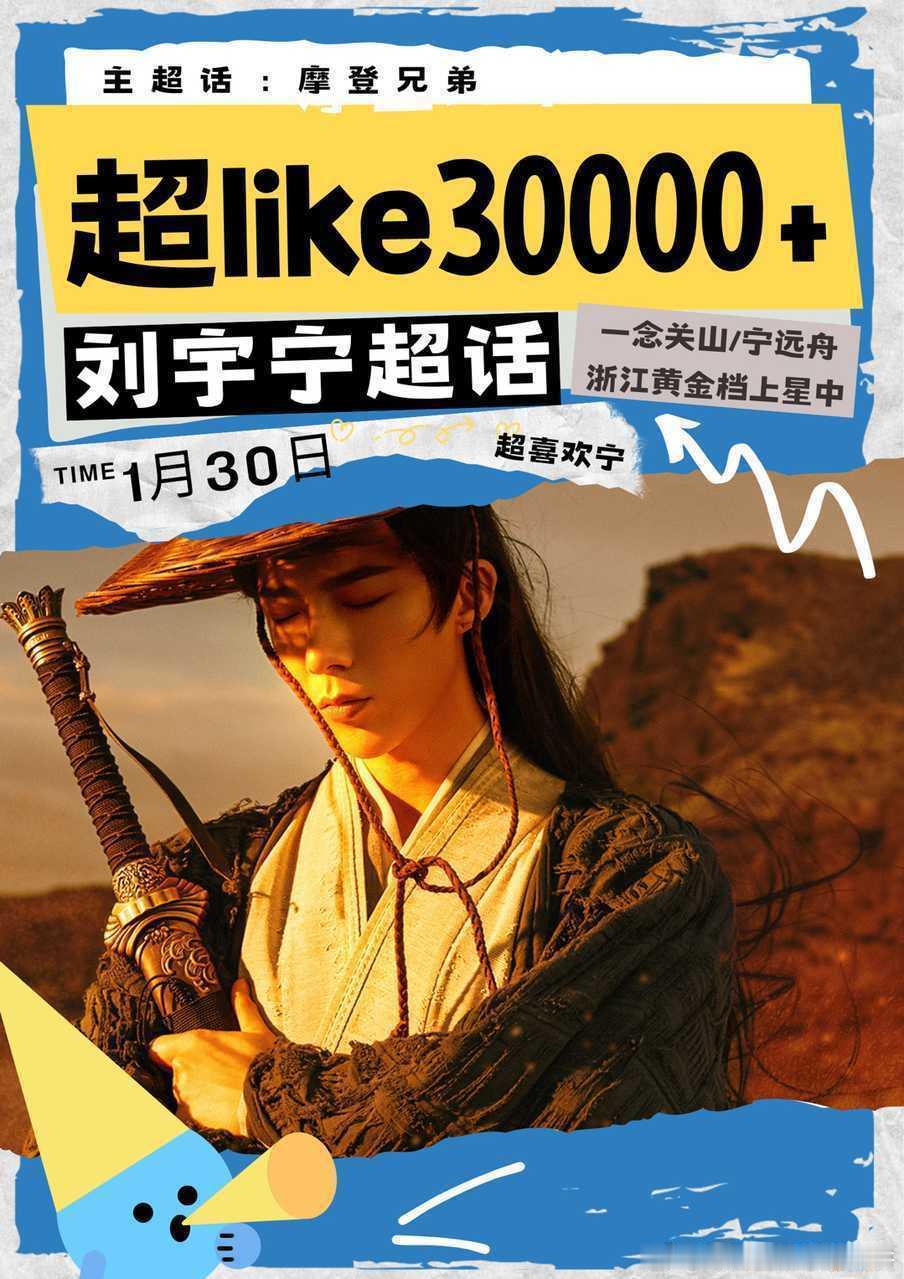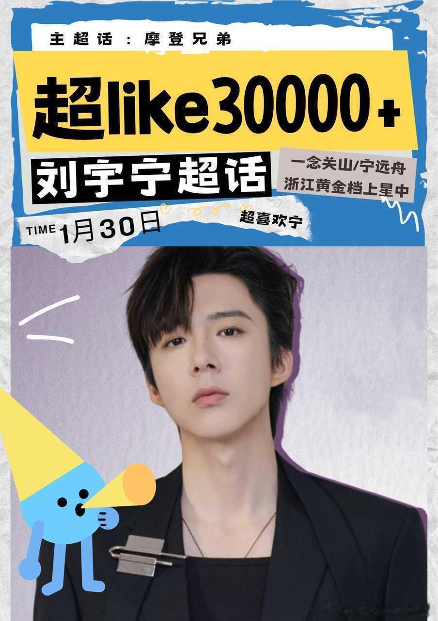 刘宇宁超like破3w,感觉一念关山吸到粉了