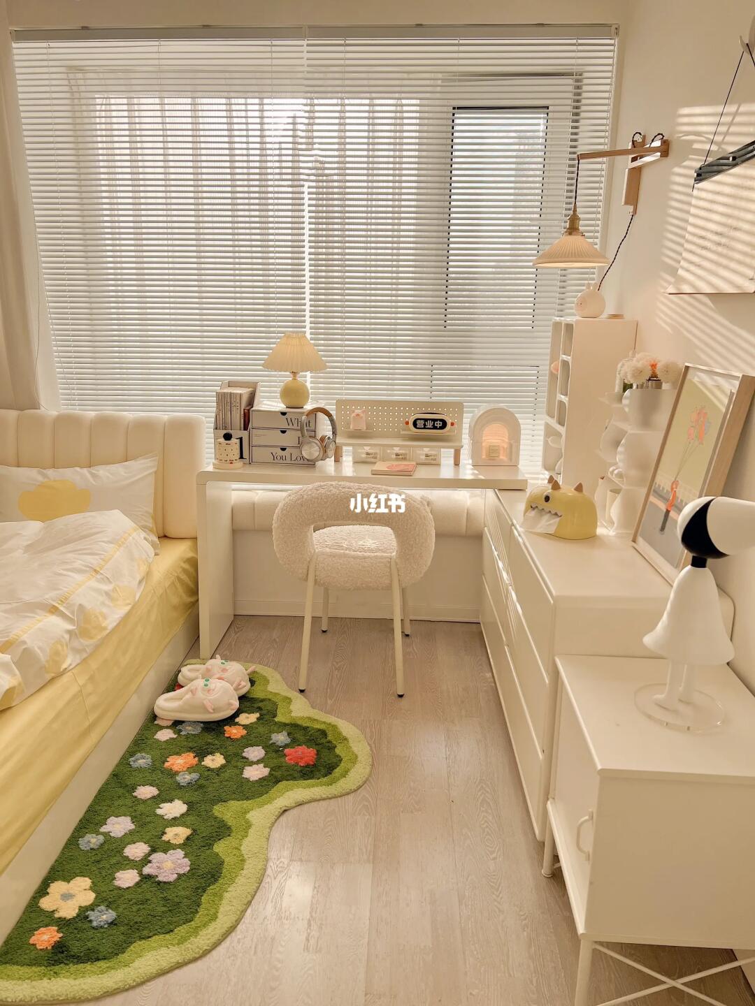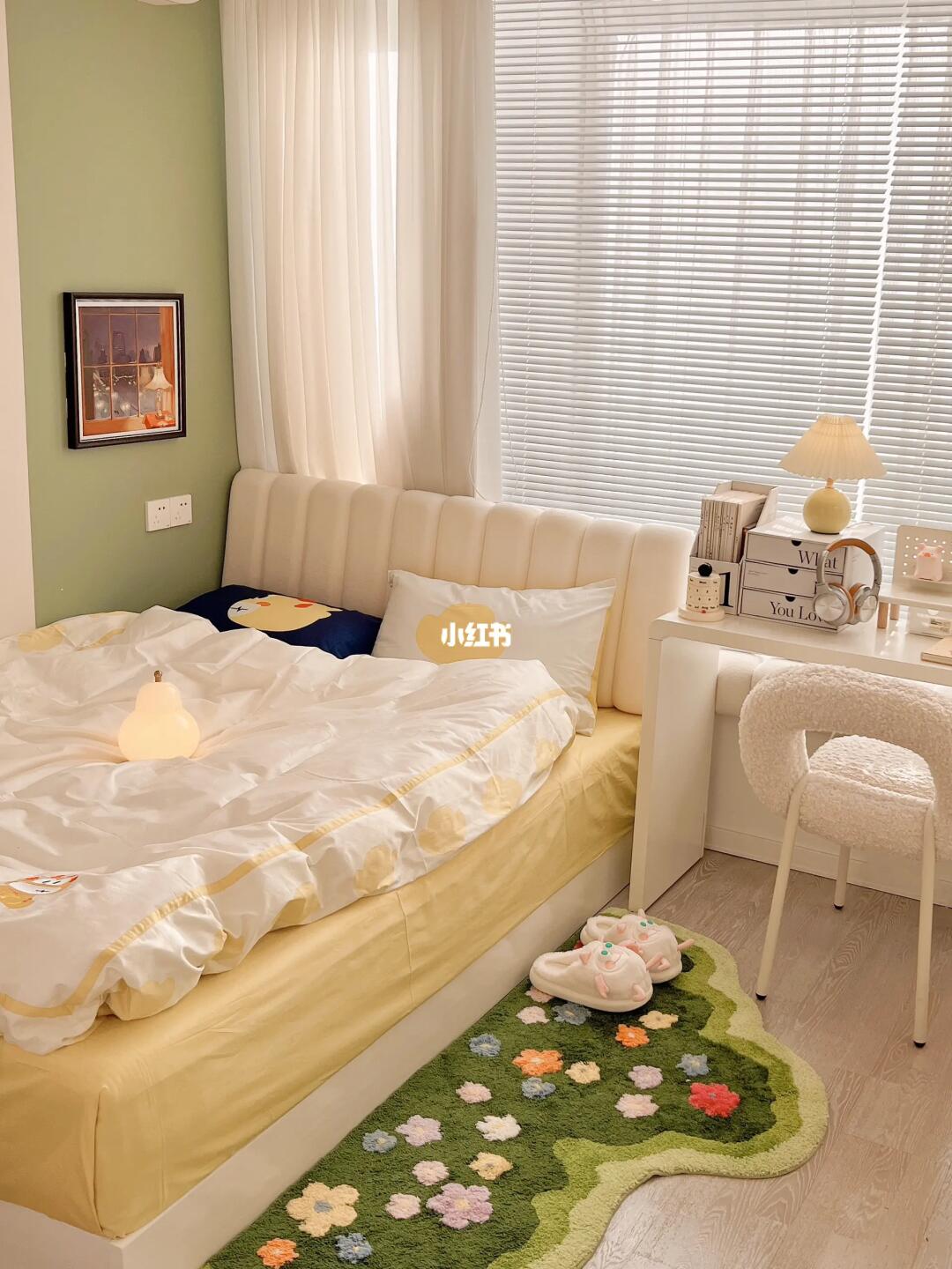 我这尺寸尴尬的小卧室,布置时候我都愁坏了😭,常规布局的话床两边没剩啥空间,床头柜都放不下,床尾空间还极大浪费,放斗柜打不开抽屉