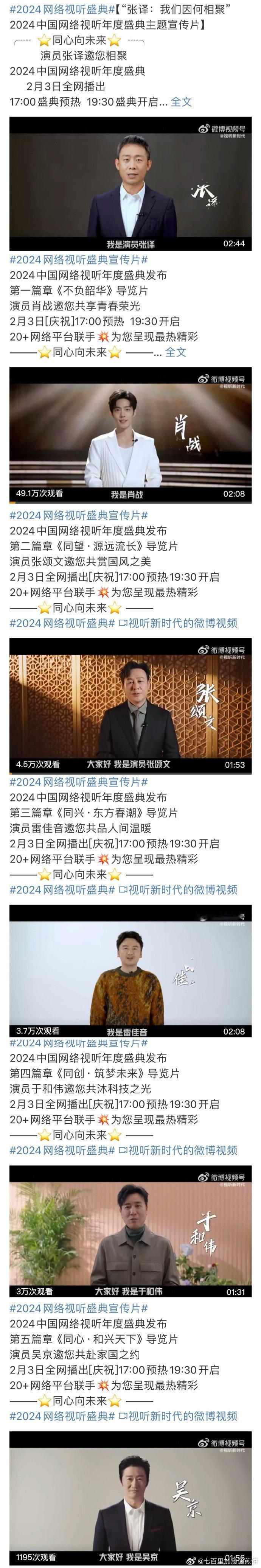 广电总局《2024中国网络视听年度盛典》1+5宣传片由张译、肖战、张颂文、雷佳