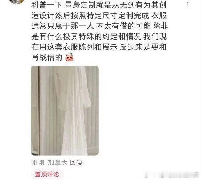 “量身定制就是从无到有为其创造设计然后按照特定尺寸定制完成衣服 通常只属于那一人..我们现在用这套衣服陈列和展示 反过来是要和肖战借的”