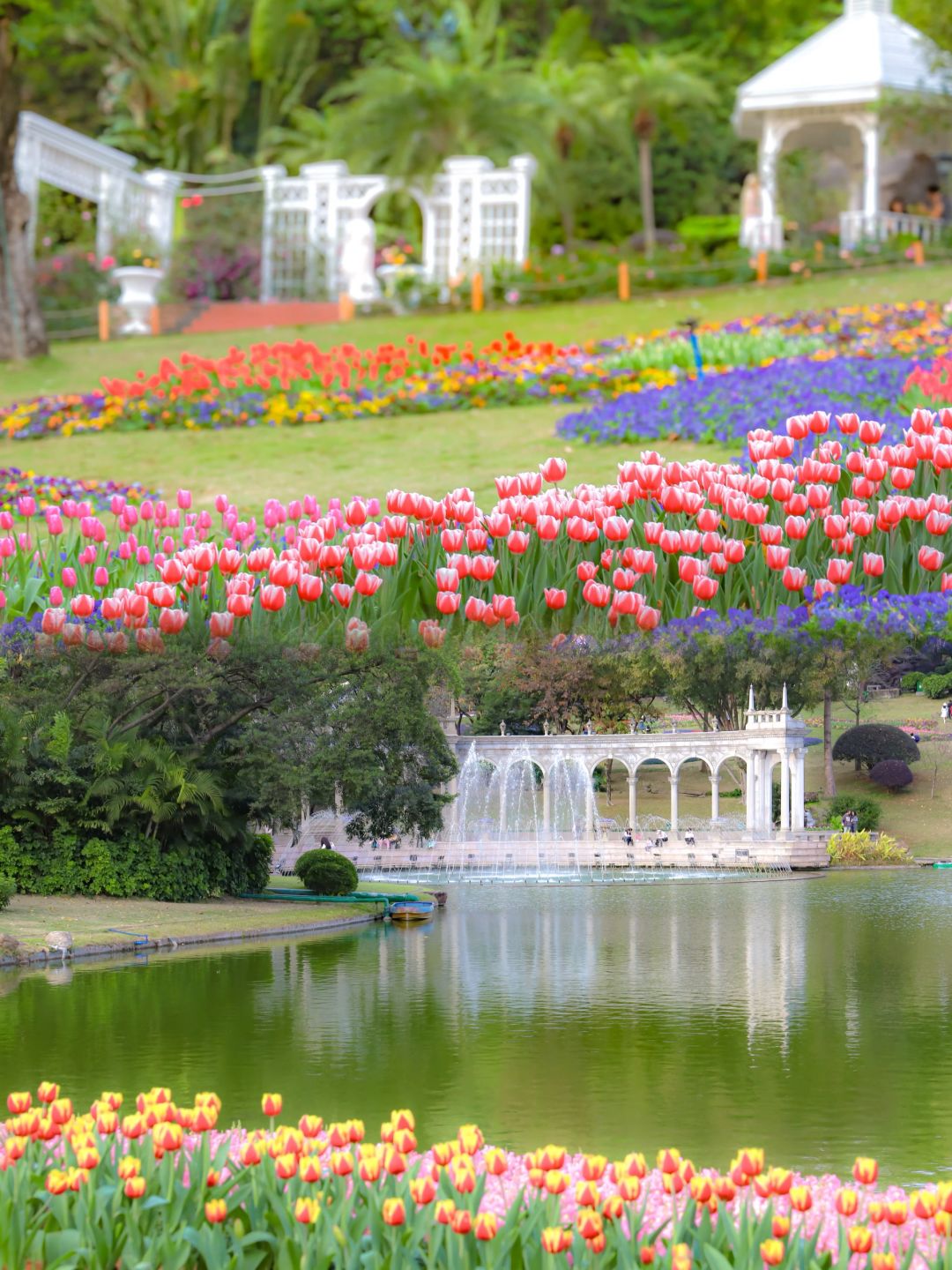广州的郁金香花海,太美啦🌷 仿佛闯入了莫奈花园~~ - 🌷云台花园 📍广州市白云区景泰街道云山南路5号 🈺营业时间:08:00-18:00 -
