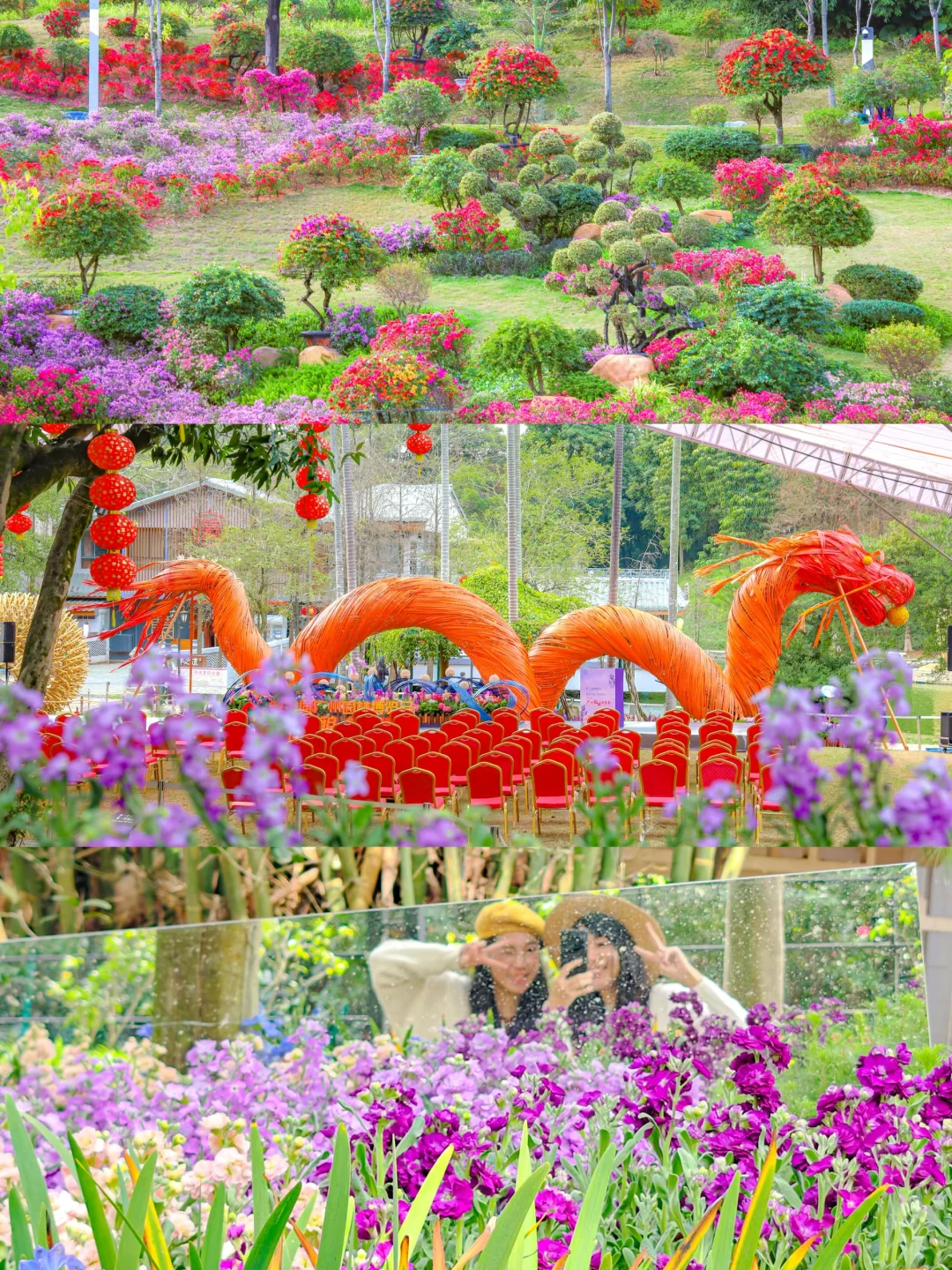 广州园博会明天2月4日就开幕啦!! 昨天趁人不多,我赶紧过来过来瞄一眼 真的有被这里的园林装置浪漫到了 广州不愧是花城!真的太会啦~~ 接下来就由这些美美哒鲜花陪我们过春节啦🧨 - 这次园博会分别为:白云山主会场,和3个分会场广州市儿童公园、广州兰圃、流花湖公园: 🔸白云山——2月4日-2月25日 🔸广州儿童公园——2月3日-2月17日 🔸流花湖公园——2月1日—3月1日 🔸广州兰圃——2024年春节期间 - 【一日游路线攻略】 ➠『白云山西门』沿途路上都很多园林艺术装饰 ➠『明珠楼』大部分大型园林艺术装置都在这里,还有条大龙 ➠『梅花涧』刚好是梅花盛开的时候,很漂亮 ➠『息亭』能俯瞰城市全景,还能看到广州塔 ➠『山顶广场』:有郁金香、绣球花(这里很多小吃,可在这里吃点东西休息一下再出发) ➠『可憩草坪』:在大草坪上有几个装置,有椰树作背景很好看 ➠『白云山南门』:熊猫、祥龙在这里 ➠『云台花园』:超多品种的郁金香,巨美 ⚠️白云山西门到南门的距离还是挺远的,可以选择乘坐景区观光车,如果体力和时间充足可以选择步行,可以慢慢欣赏沿途的风景,且途中也会有挺多园林装置的。 - 📍白云山:5r 📍云台花园:10r 🌷展期时间:2024年2月4日-2月25日 -