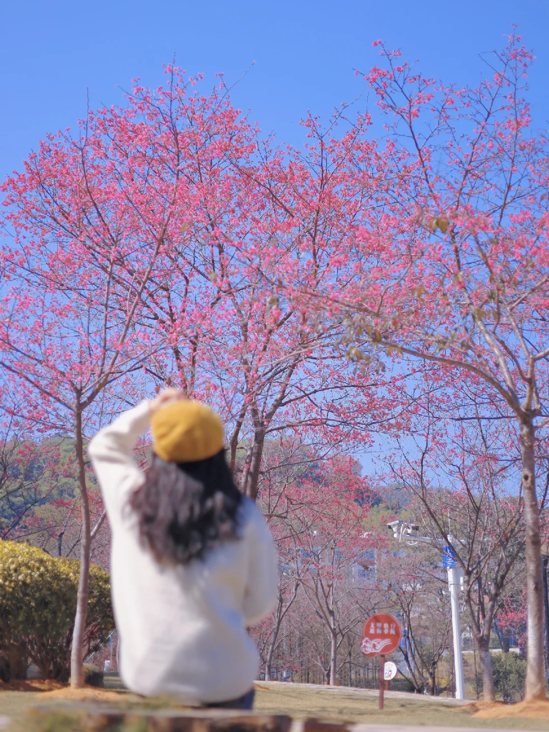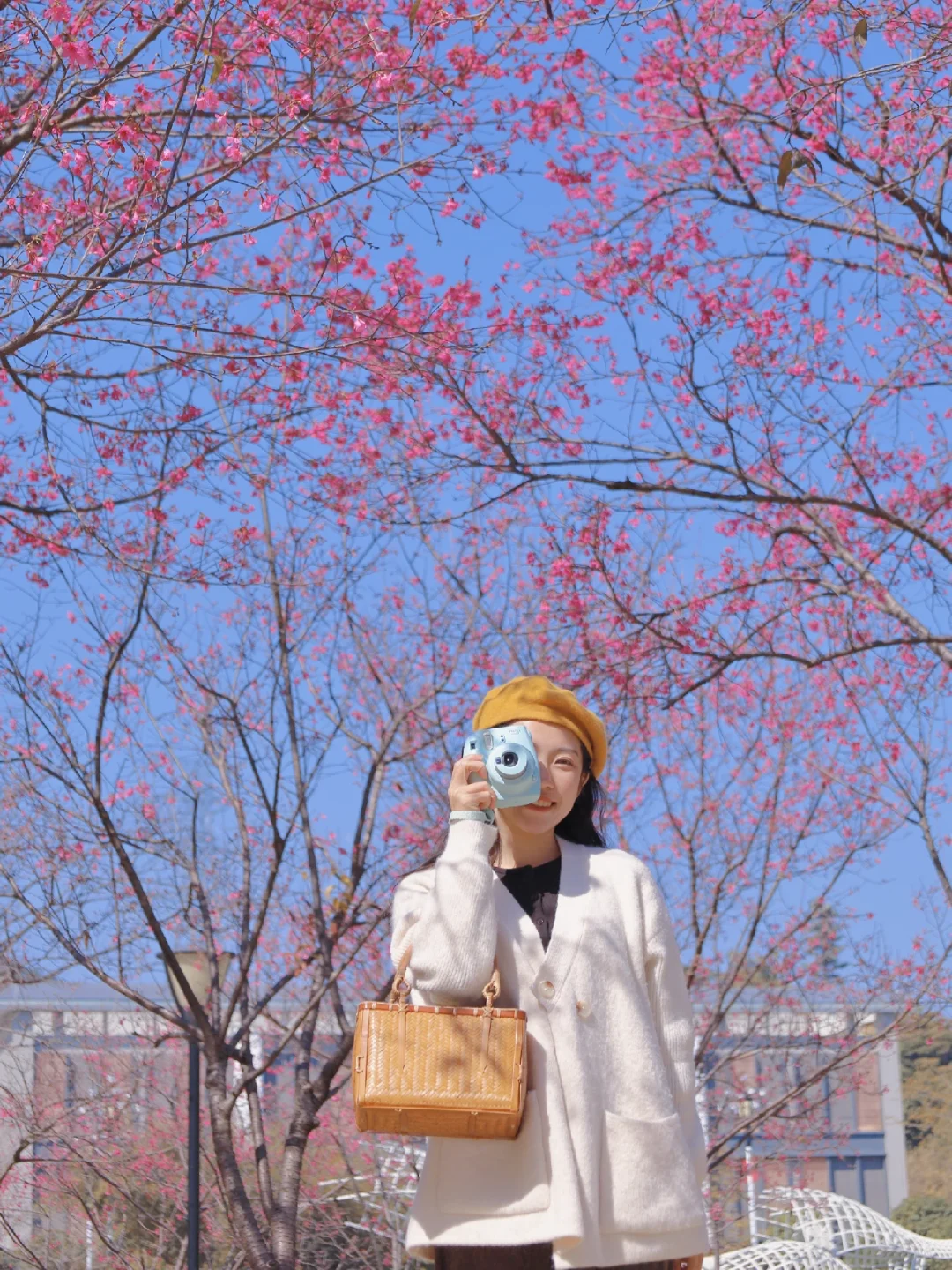 2.樱花树比较高,建议从下往上拍,视觉会更好看