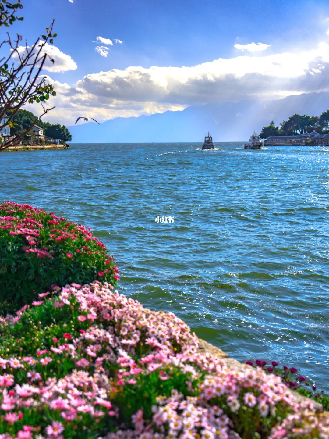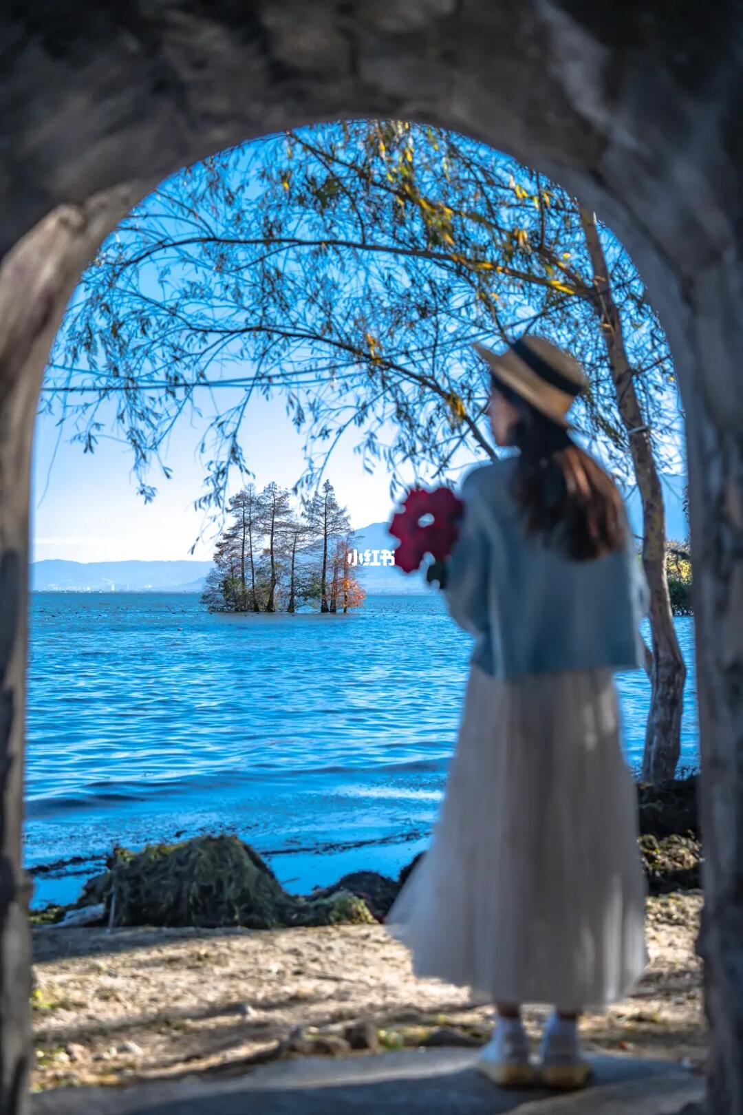 有很多棕榈树,仿佛到了海边一样,往前走还有一条小道直通洱海