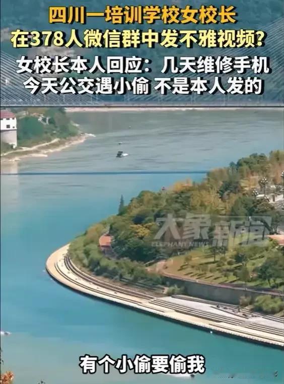 不堪入目,四川一女校长,在378人微信群,发布90秒不雅视频,本人回应,令人意外。 四川宜宾,一培训学校378人微信群里,忽然,出现一段90秒不雅视频。让正在群里聊天的人,一脸震惊,是谁发这条低俗视频? 这时,有人发现是培训学校女校长,微信账号发布,这条不雅视频。瞬间,微信群里的人,心里产生无数个疑问,又一次次否定,女校长素质高,应该不会发不雅视频? 女校长得知此事后,网传她发不雅视频的事情,给她带来负面影响,有损她的声誉。女校长急忙在网上澄清,我没有发不雅视频,我怀疑这两个人。 前几天,我去手机店维修手机,可能是维修师傅,图谋不轨,盗用我微信账号,在微信群里,发布不雅视频。 今天,我从学校下班,乘坐公交车,遇到一个小偷,小偷偷过我手机。可能是这个小偷,太调皮,他用我微信在378人微信群里,发布不雅视频。 我没有发,也许是手机维修师傅,也许是那个小偷发布,这条不雅视频。女校长本人回应,引起网友质疑,这条不雅视频,是谁发布,又是谁在说谎? 来源于大象新闻