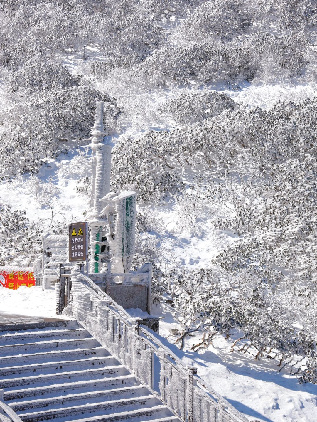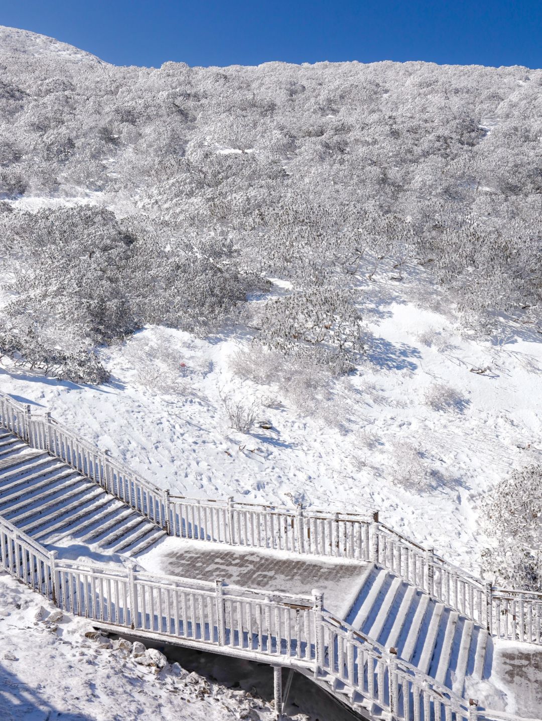 还能看到雪山🏔️和树上的厚厚的白色雪挂❄️