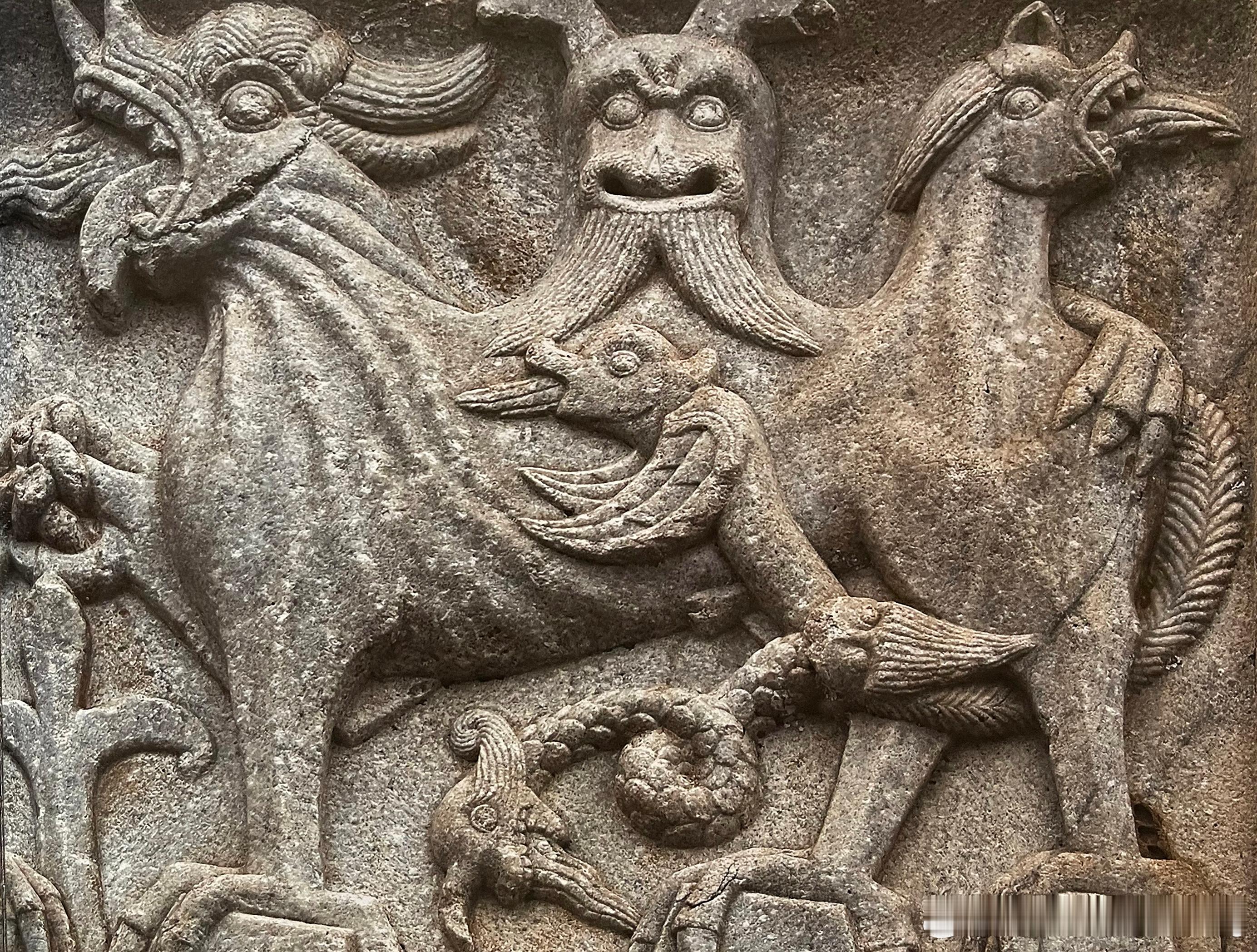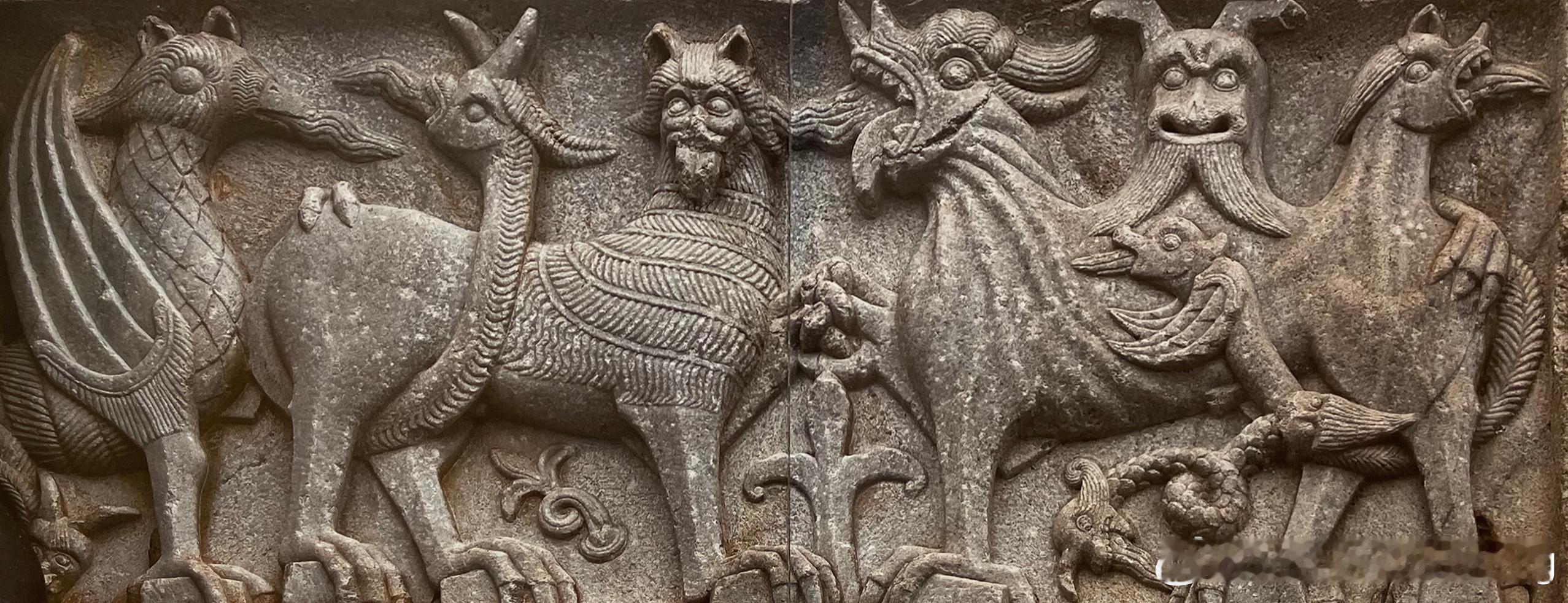 教堂建筑置身于邪道猖獗的世界,妖怪四处横行,魔鬼恫吓人心,为了将恶魔驱离教堂,必须找出驱邪之道。装饰于外墙的各式各样的野兽与怪物,被寄望发挥防御奇效。举例来说, 法国西南部圣波莱达的圣保罗教堂的唱诗班席外墙上,有八个表现基督受难的浮雕所组成的饰带,底下为野兽像,其中两只狗头生物的面对面,前爪缩为拳状,一旁是狮鹫兽。据夏德解释,它们是古代神话中的地狱犬赛波罗斯,通常表现为三头兽,象征人从生到死的三个阶段。