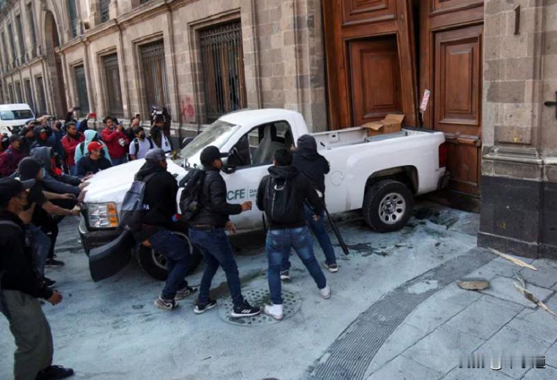 墨西哥总统屋中坐 抗议卡车冲进来 ——3月6日,墨西哥总统安德烈斯·曼努埃尔·洛佩兹·奥夫拉多尔,在总统府正准备早间讲话,抗议群众竟然开着墨西哥国有电力公司的一辆白色皮卡车冲破总统府大门、直奔总统。 因为不满政府在43名学生失踪事件不作为,才有了组团开车闯宫殿的一幕。 但总统奥夫拉多尔很大度,表态称;“总统府大门将很快修好,政府不会镇压抗议群众,将继续调查失踪学生的案件,并与抗议者代表会面、交换意见”。 总统这胸怀! 服了!