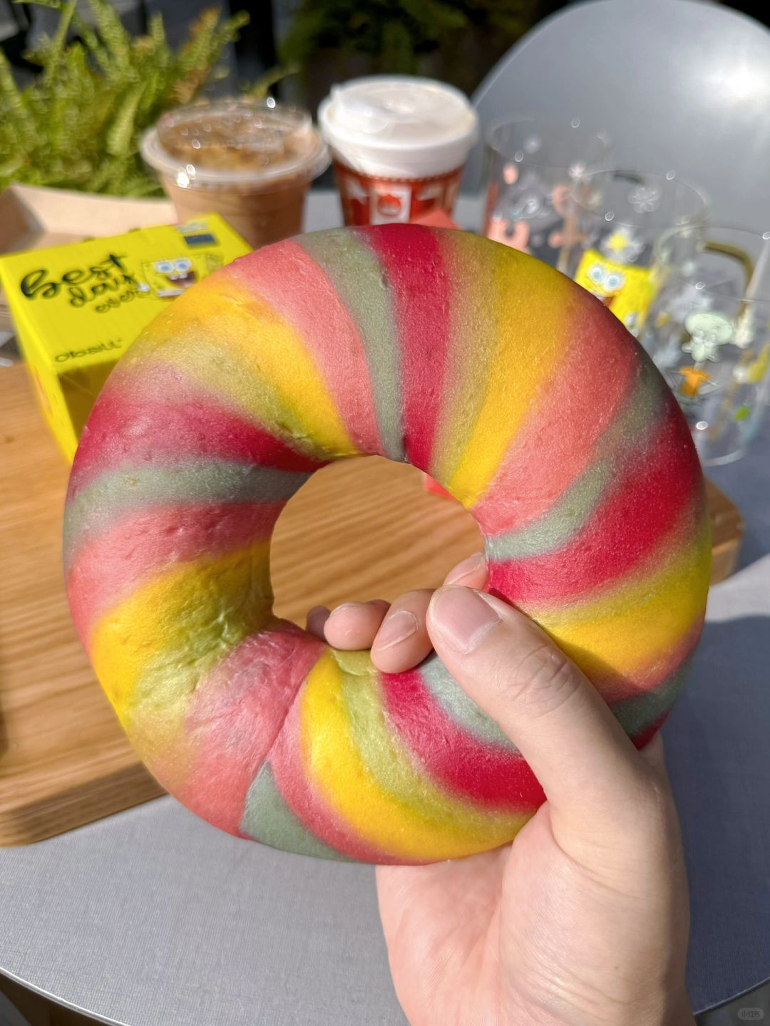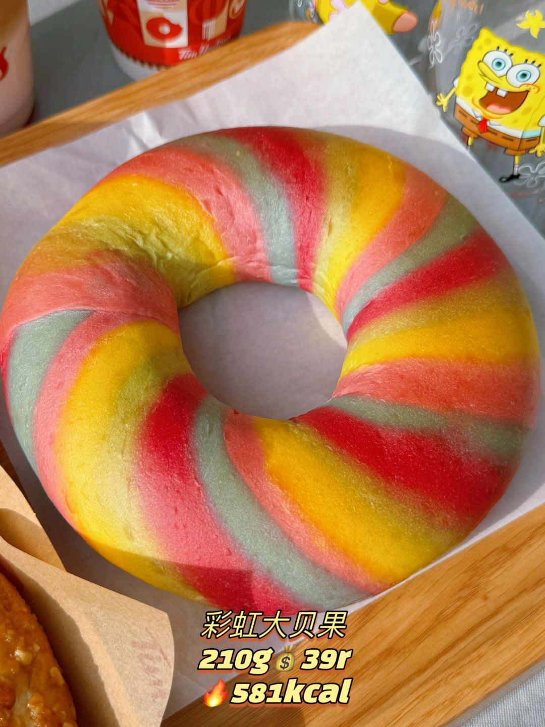 这个彩虹大贝果真是太可以了,好巨大,长得好好笑,软乎乎还挺好吃,两款碱水真是太满足了,一定要吃爆这两款!法式草莓就……哎😑