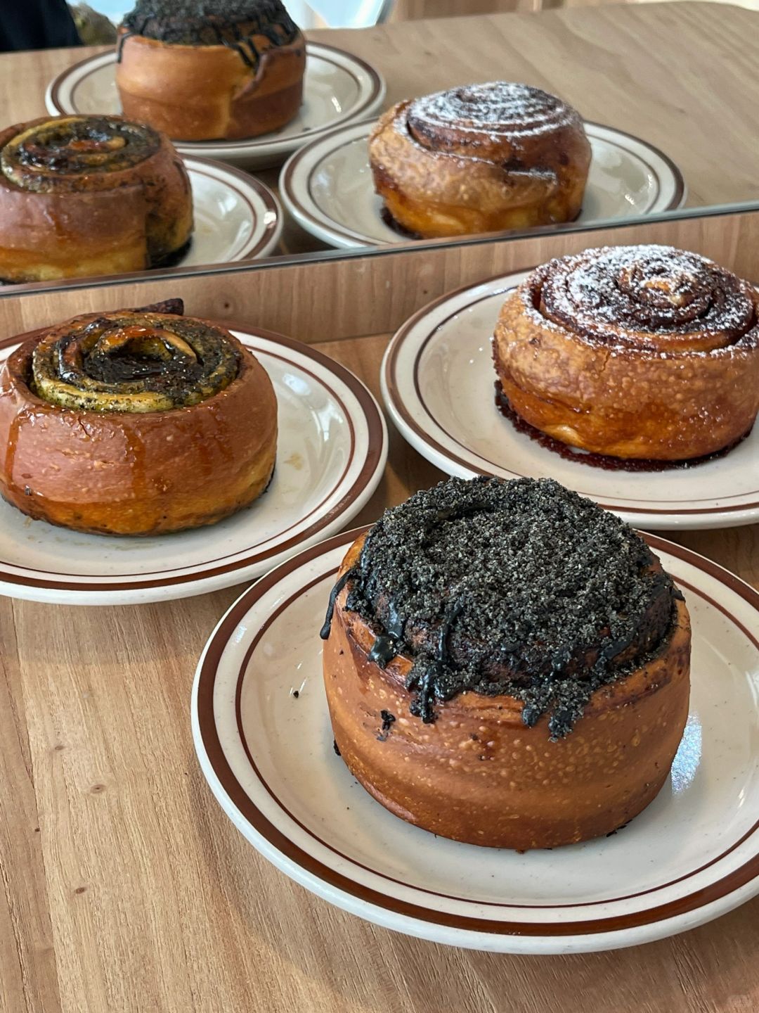 来都来了,会有人不吃肉桂卷吗,哈哈哈哈哈! 又是刚好遇到zui爱的肉桂卷新的店新出得卷,怎么可以不吃![笑哭R][笑哭R][笑哭R] 黑芝麻真的好特别,不过茉莉绿茶卷才是真的绝,肉桂卷王自己卷自己,太好吃了,超好吃!