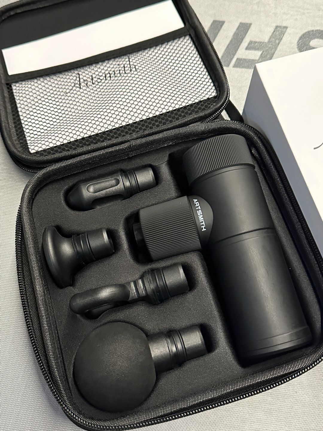 每次运动完之后就会全身拉伸 闺蜜送我的Artsmith 筋膜枪真的太好用啦 健身结束后用上几分钟 小腿的肌肉都松软很多了 不仅健身后用, 久坐,或者肩背酸痛可以用 💖 筋膜枪有4个全硅胶an摩头 小机身大推力 可以贴合不同的肌肉曲线 特别喜欢小圆头和子弹头~ 而且充电1️⃣次可以用很久真的太香啦~