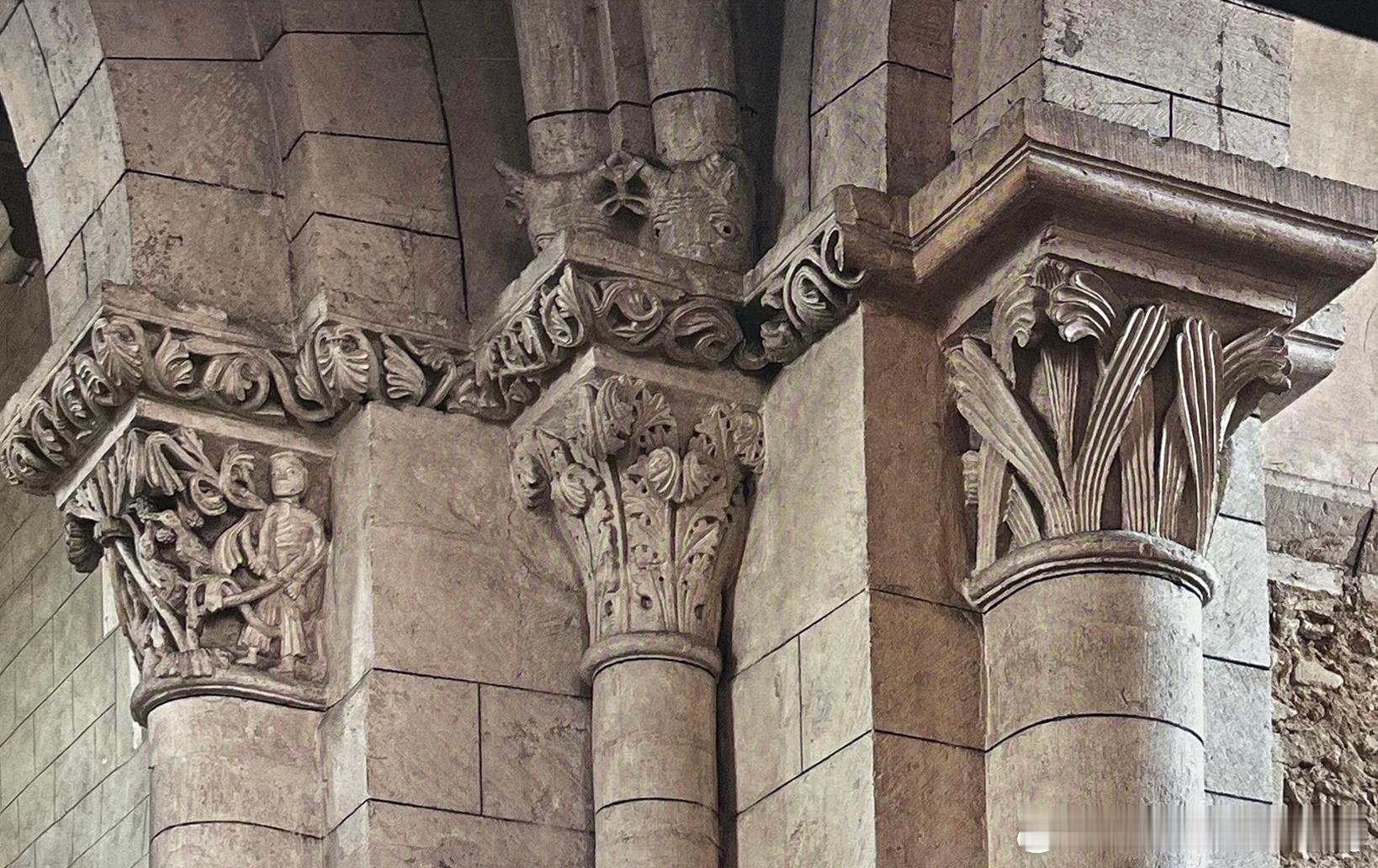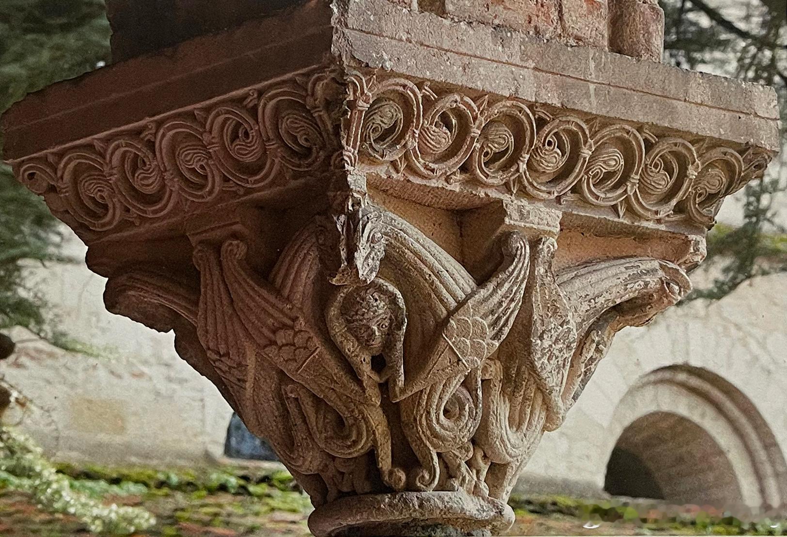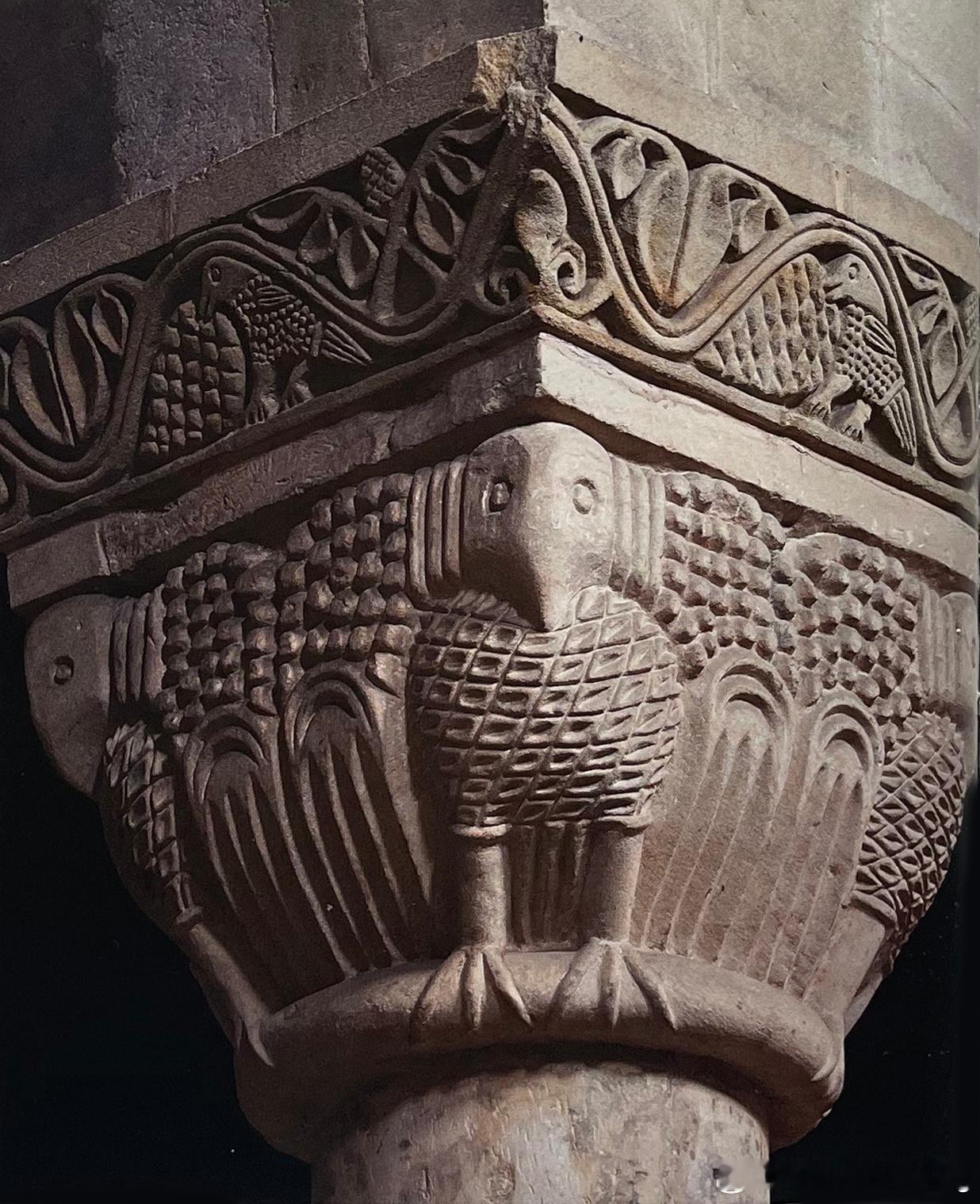 图像雕刻的正面面向外界,而柱头则在罗马式宗教建筑内执行其最崇高的任务:柱头为回廊带来了丰富图像,在教堂中殿也有超乎其建筑功能的重要性。