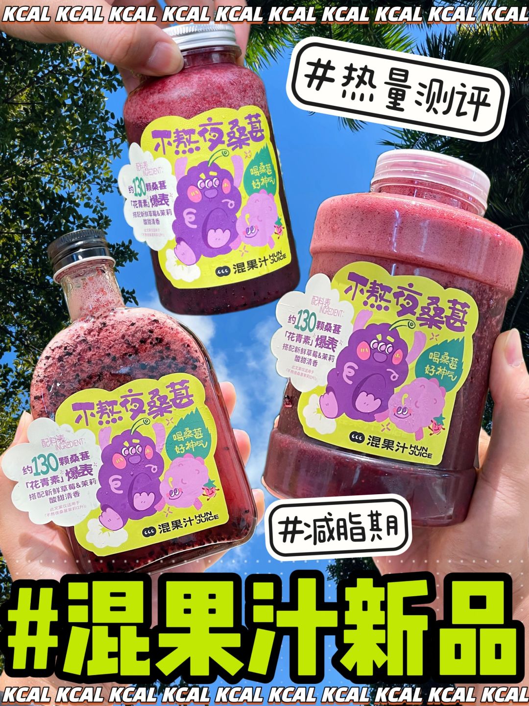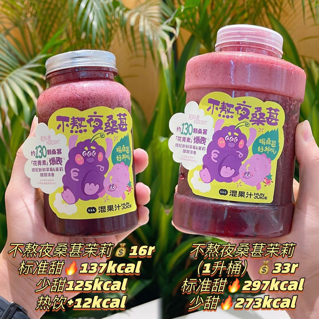 来哇,深圳的家人们,混果汁终于来了对吧,没骗你吧,真的是被一个被催更催爆的混果汁了,终于喝上了,泪流满面,相拥而泣啊,哈哈哈哈哈! 这次的不熬夜桑葚几款用的可是潮汕的桑葚啊,作为一个潮汕人本肉怎么可以不冲! ✅不熬夜桑葚大紫瓶,桑葚+都乐菠萝+苹果,这款是纯果汁! ✅不熬夜桑葚茉莉,桑葚+草莓+秋露茉莉+蒟蒻爆爆珠,这款清爽超多鲜果肉! ✅不熬夜桑葚茉莉(1L),桑葚+草莓+秋露茉莉+蒟蒻爆爆珠,130 颗桑葚啊,花青素爆棚!