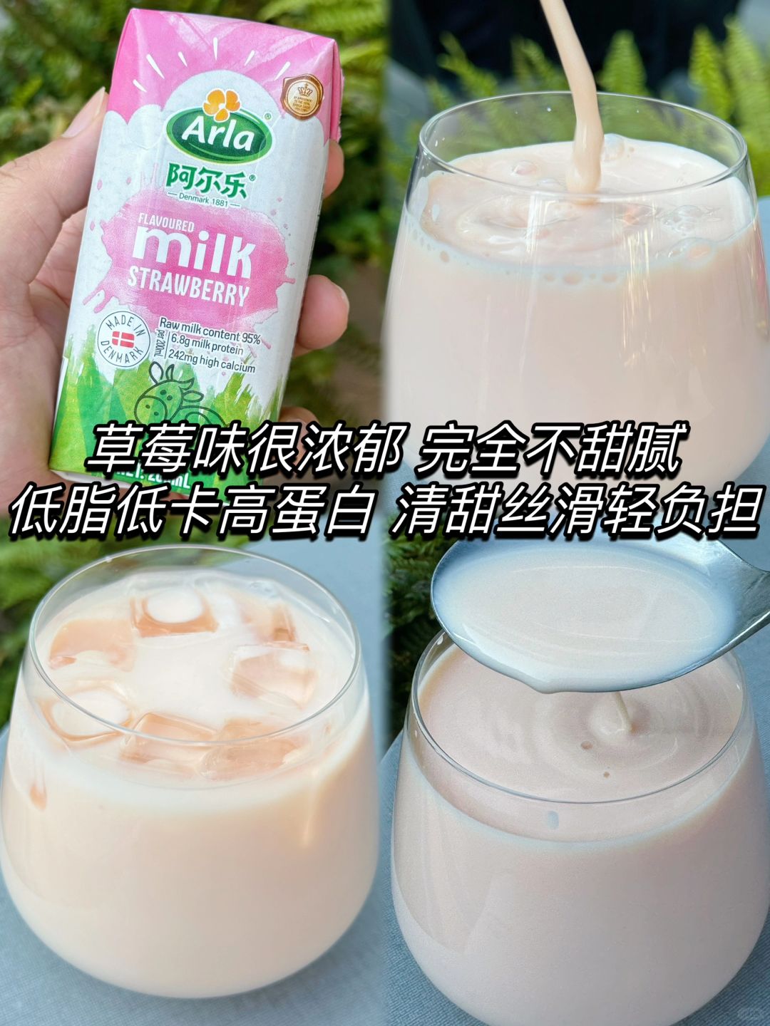 阿尔乐草莓牛奶:草莓味很浓郁,完全不会甜腻,口感像融化的草莓冰淇淋,生牛乳含量95%,一口浓醇的生牛乳,喝完满嘴都是草莓香,偶尔用来平替奶茶,自己DIY奶茶真的很简单,关键也只有1个苹果的热量,低脂低卡蛋白还高,一天两瓶也是轻负担不会长胖!好喝的整个冰箱都塞满了它!