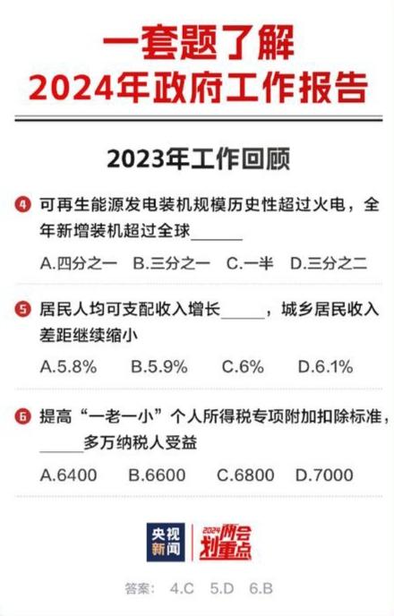 工作报告指出,今年发展主要预期目标是:国内生产总值增长5%左右;城镇新增就业1200万人以上,城镇调查失业率5.5%左右;居民消费价格涨幅3%左右;居民收入增长和经济增长同步;国际收支保持基本平衡;粮食产量1.3万亿斤以上;单位国内生产总值能耗降低2.5%左右,生态环境质量持续改善。
