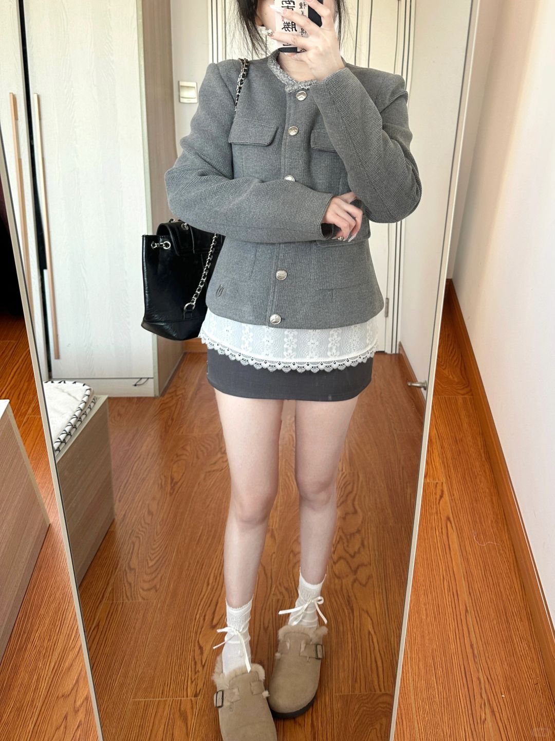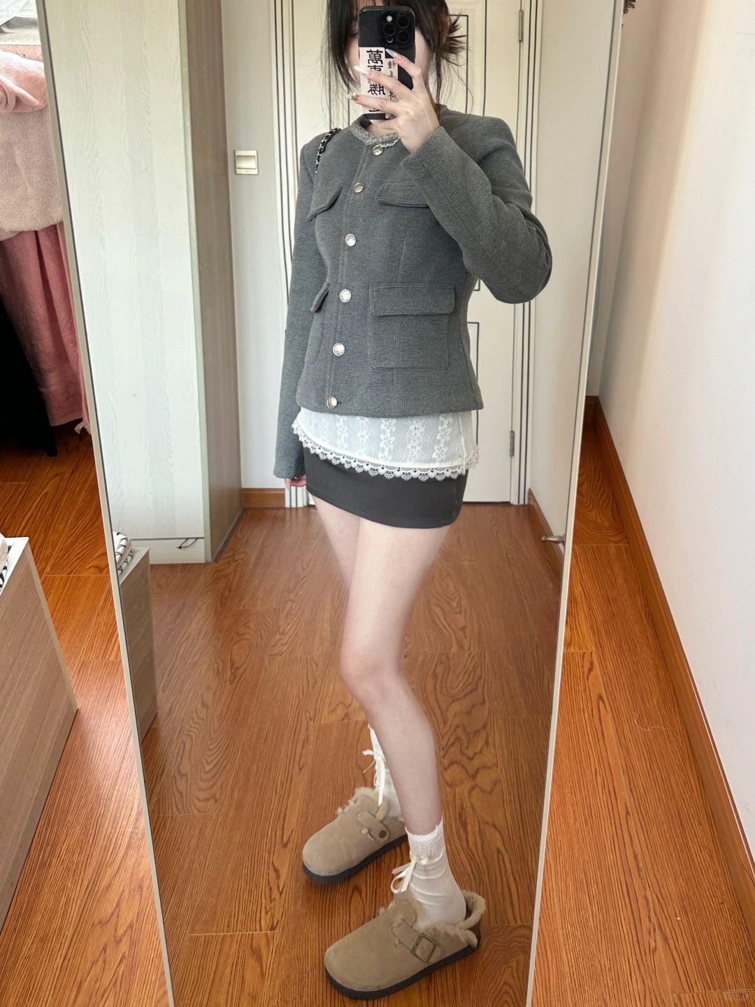 灰色格雷系穿搭真的狠狠爱了!蕾丝衬裙的设计真又气质又甜美!