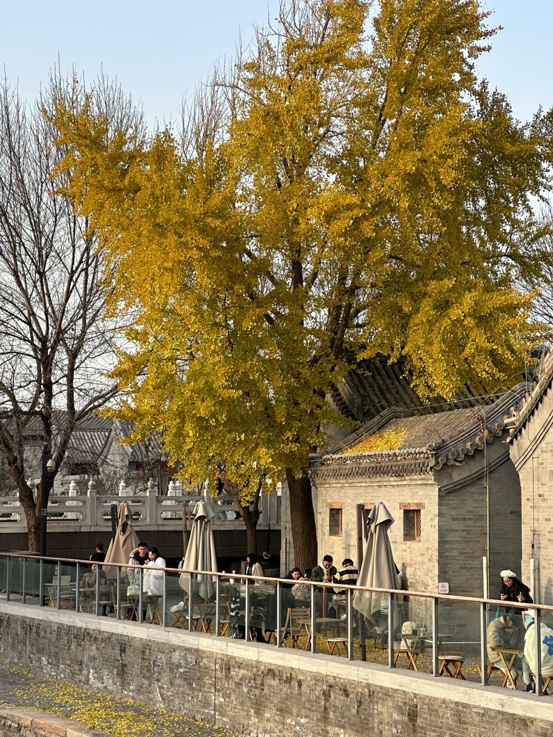 在桥上看过去,一整棵银杏树,
