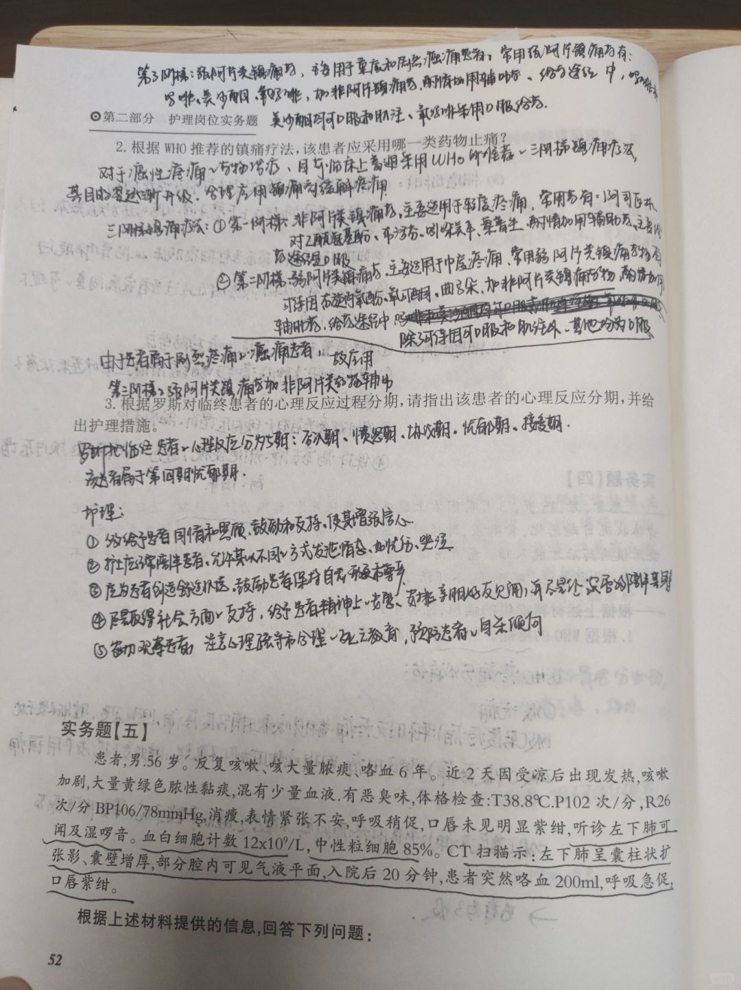 实务题:烧伤、疼痛、临终心理、支气管扩张窒息 案例:无排卵性功血、维生素D缺乏性佝偻病、肾病综合征 后几张还是15-23综应客观题真题考点。