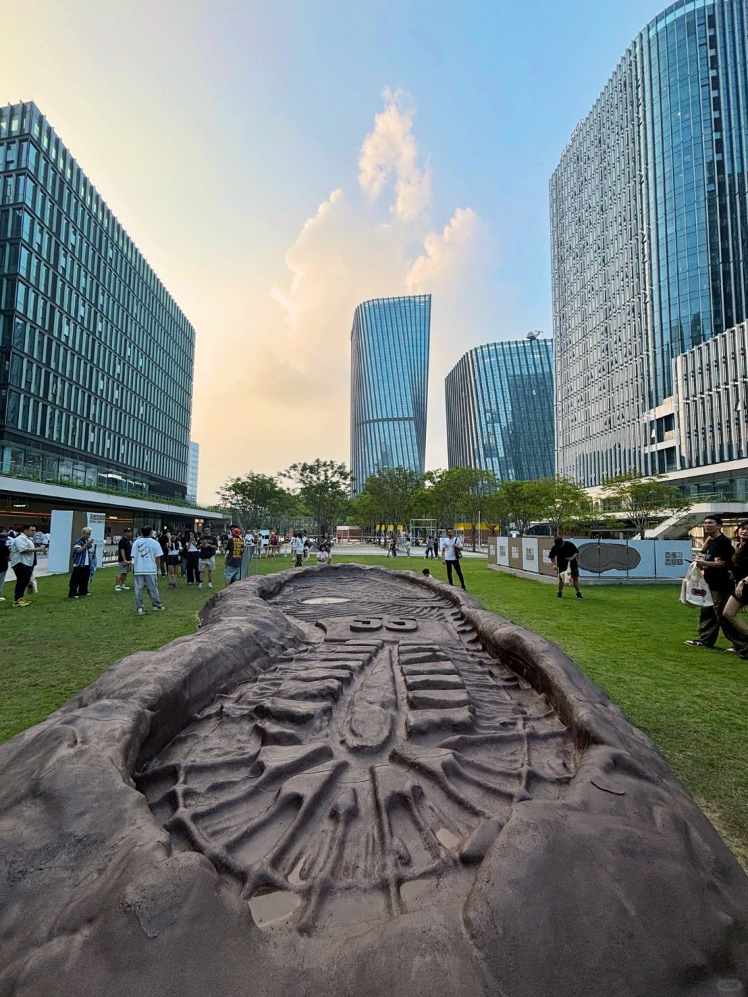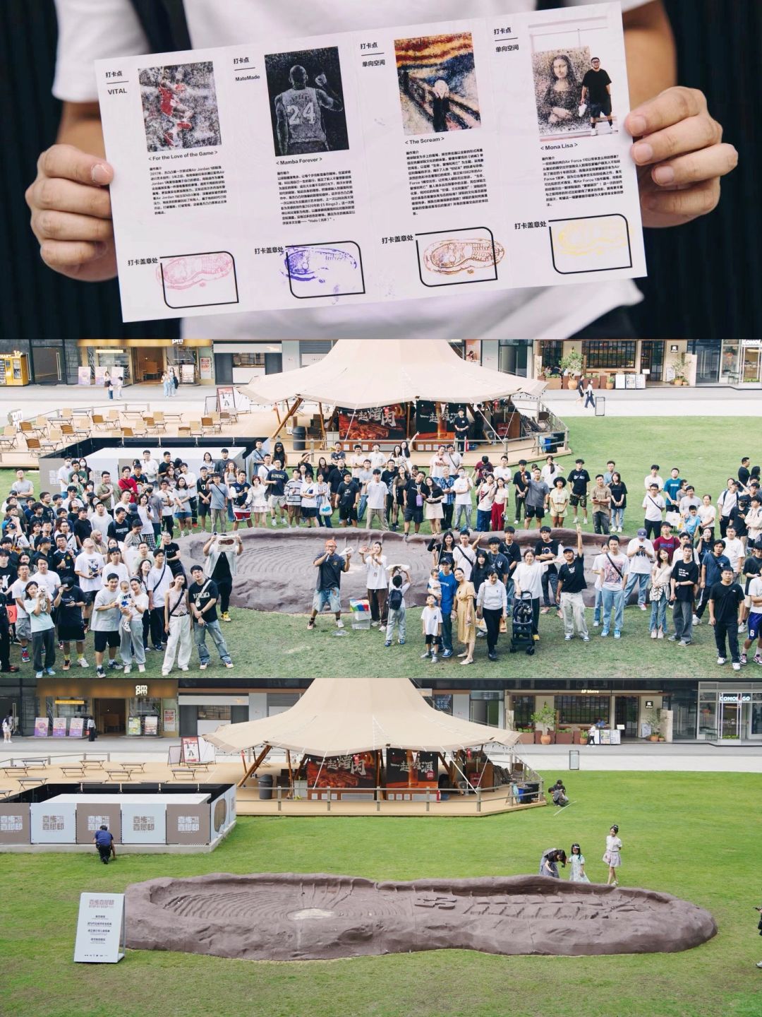 🔸广场中央有着长达15米的鞋印原型源于由杰凸凸设计的雕塑作品《第五十五步》,被称作「食神Dunk」的联名限量版球鞋,真的超壮观。同时展览展出的艺术画作以代表不同运动领域的球鞋为绘制载体分别在三家门店展示画作与球鞋,抽象而又生动,无论是拍照还是欣赏都非常不错。