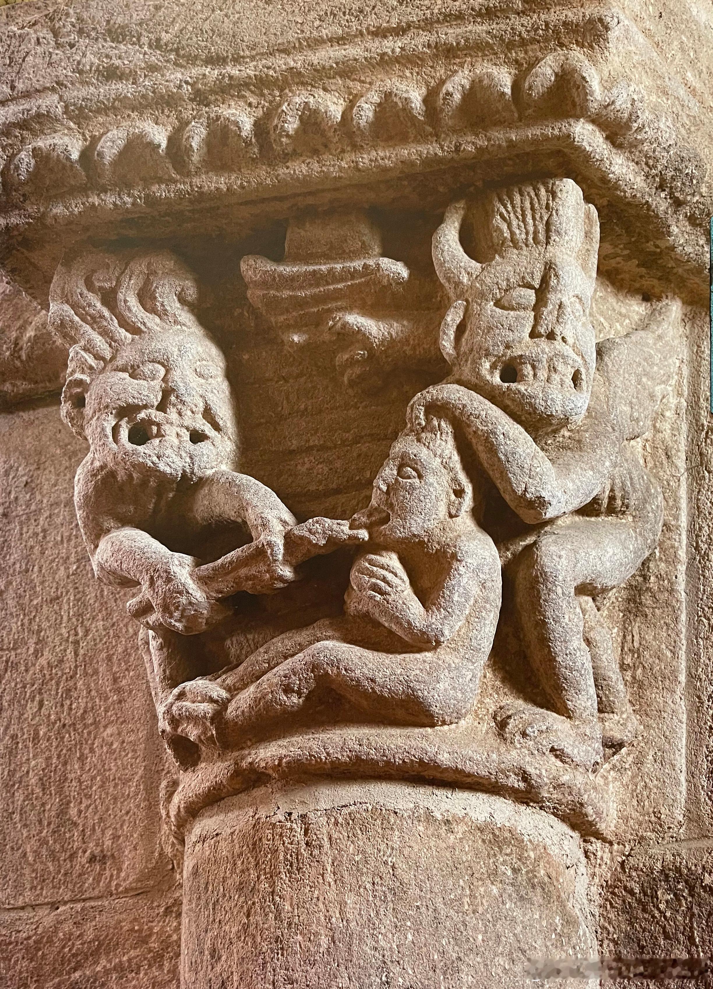 #罗马式时期艺术ROMANESQUE#柱头上的耶稣与恶魔
