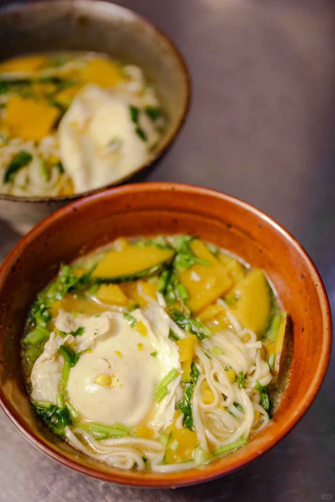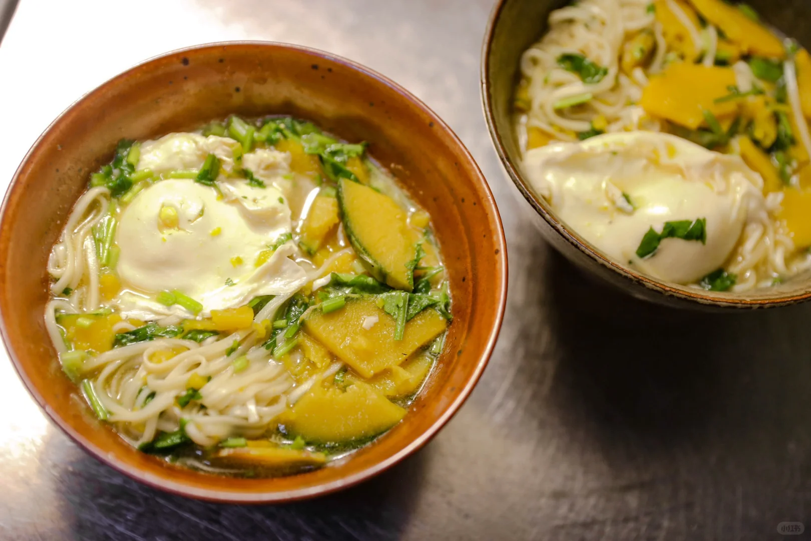 面条的花式做法 一人食吃什么 素食也可以很好吃 面条 一碗南瓜炝锅面,带来温暖和幸福。 糯叽叽的南瓜片,入口即化。