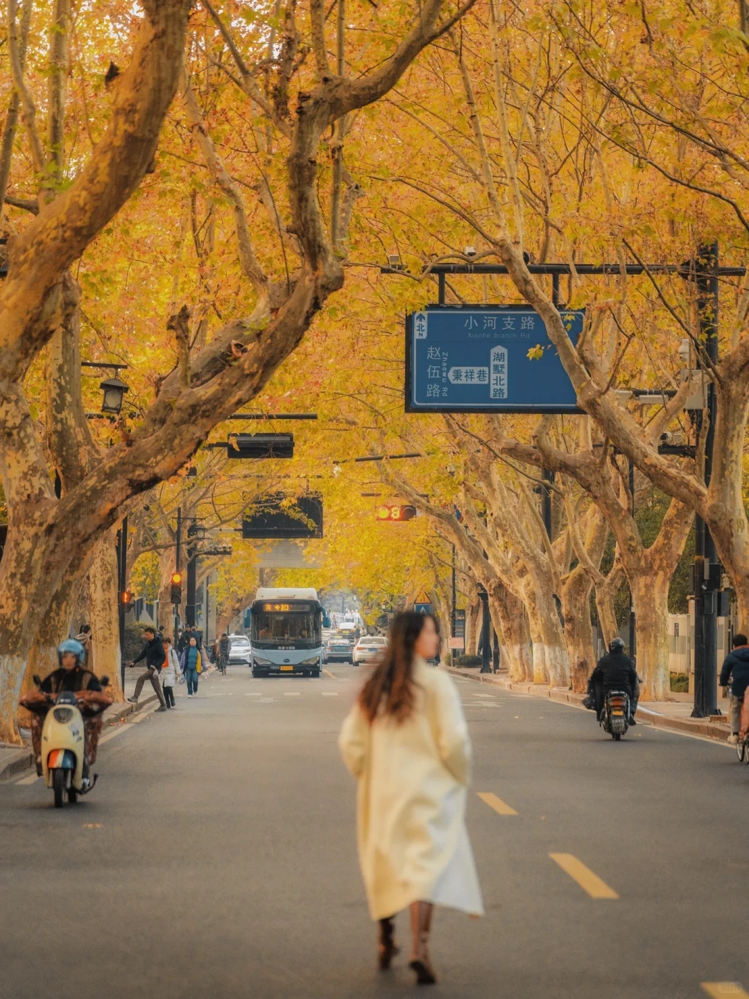 都说杭州的秋日西湖的落叶红枫是天花板 其实相比在花港观鱼人挤人 我更喜欢去运河边走一走 这里不仅历史底蕴深厚 粉墙黛瓦的江南水乡 坐下来看河面波光粼粼 边走边停 享受城市的宁静 这才是杭州最美的CITYWALK路线好吗 - 运河Citywalk路线 富义仓 ➡️ 香积寺 ➡️ 大兜路历史街区 ➡️ 拱宸桥 ➡️ 桥西历史文化街区 ➡️ 小河公园 ➡️ 小河直街历史文化街区➡️ 平炼路(小火车)➡️炼油厂旧址 - 📷打卡点攻略 1⃣️湖墅北路到小河直街 到处是金黄的落叶和高大的银杏 一路风景悠然 citywalk就是要边拍照边压马路才对 2️⃣香积寺 香积寺,一座隐藏在城市中的寺庙 小而精致,在大运河旁边 秋冬时期在银杏的衬托下更美了 建筑颇有宋朝的风格 3⃣️拱宸桥 “一座拱宸桥、半部杭州史” 这里以前是杭州的北大门、也是京杭大运河的终点标志 4⃣️大兜路 诗词灯晚上很好看,整条街都是圣诞的氛围 下午看阳光穿过树叶,买一杯饮品边走边逛集市太chill了 5⃣️小河公园 由著名设计师隈研吾设计而成,废弃的小油库改造 很有设计感、银色和铁锈色的油罐建筑、满满的工业风 6️⃣平炼路小火车 跟着小朋友意外发现的免费小火车,可以爬上去,进入火车内部, 喜欢拍照或者带娃的朋友可以去,完全免费!导航泊缦府便能看到 7️⃣小河直街 年轻人最喜欢逛的地方、也是最热闹的一站 一定要晚上来逛逛,从夜幕降临🌄,逛到华灯初上🏮 暖黄色的灯光亮起,超级出片📸,怎么拍都好看! -
