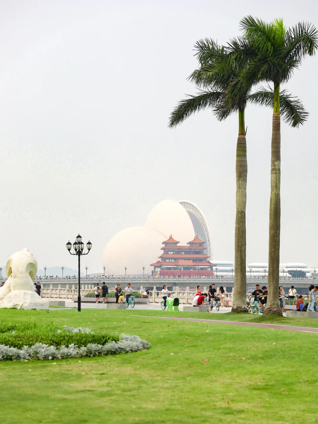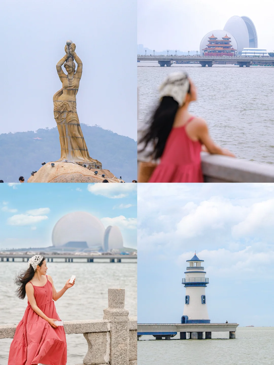 打卡珠海日月贝,在情侣路有还几个都是比较经典的网红机位哦。可以在野狸岛骑行环岛游,很惬意