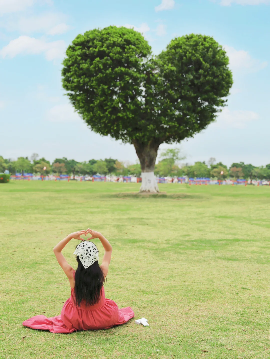 而且在一个海边公园还藏着一颗浪漫的爱心树💚