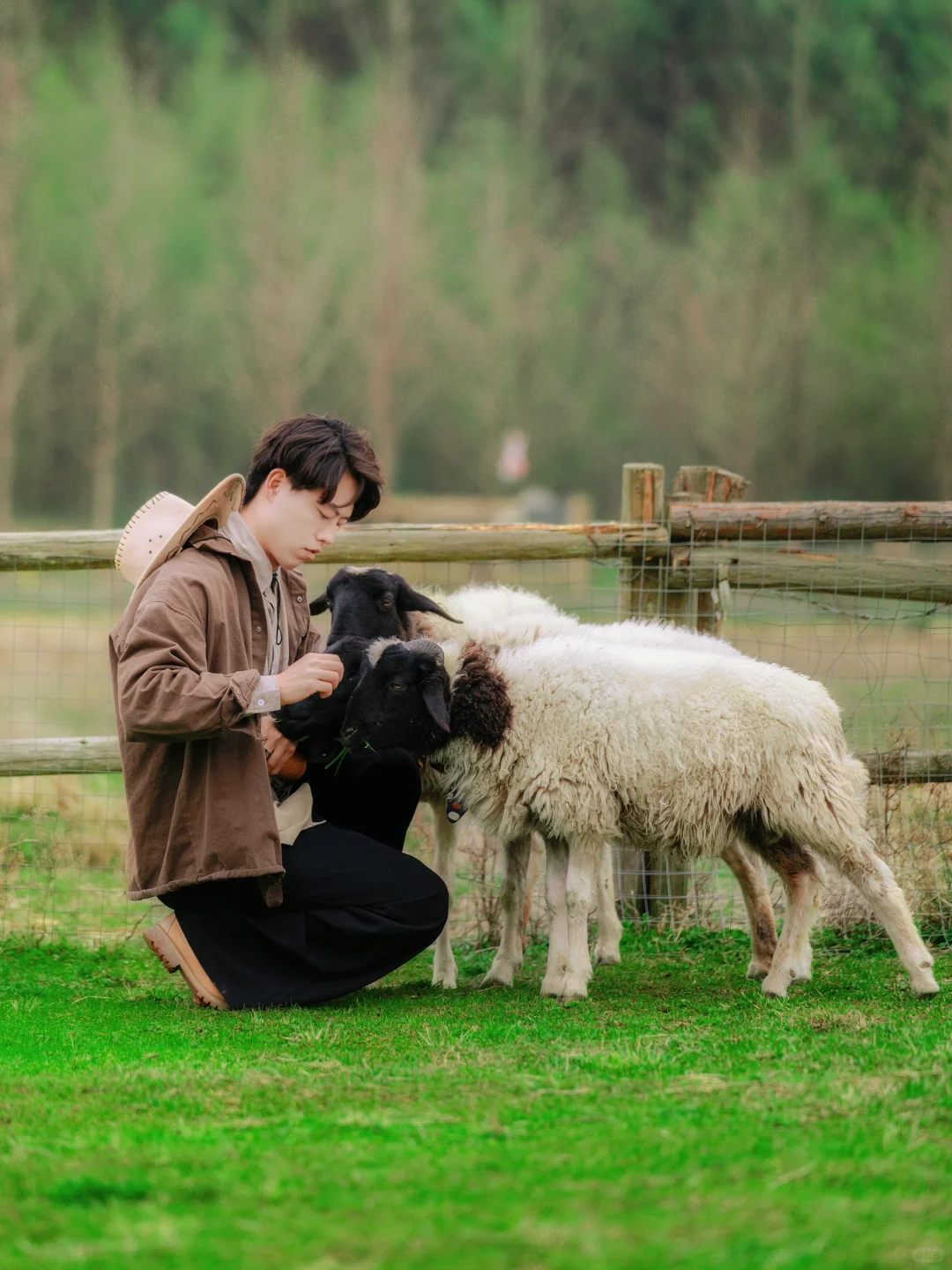 1️⃣在农场和和羊咩咩🐂一起拍照📸