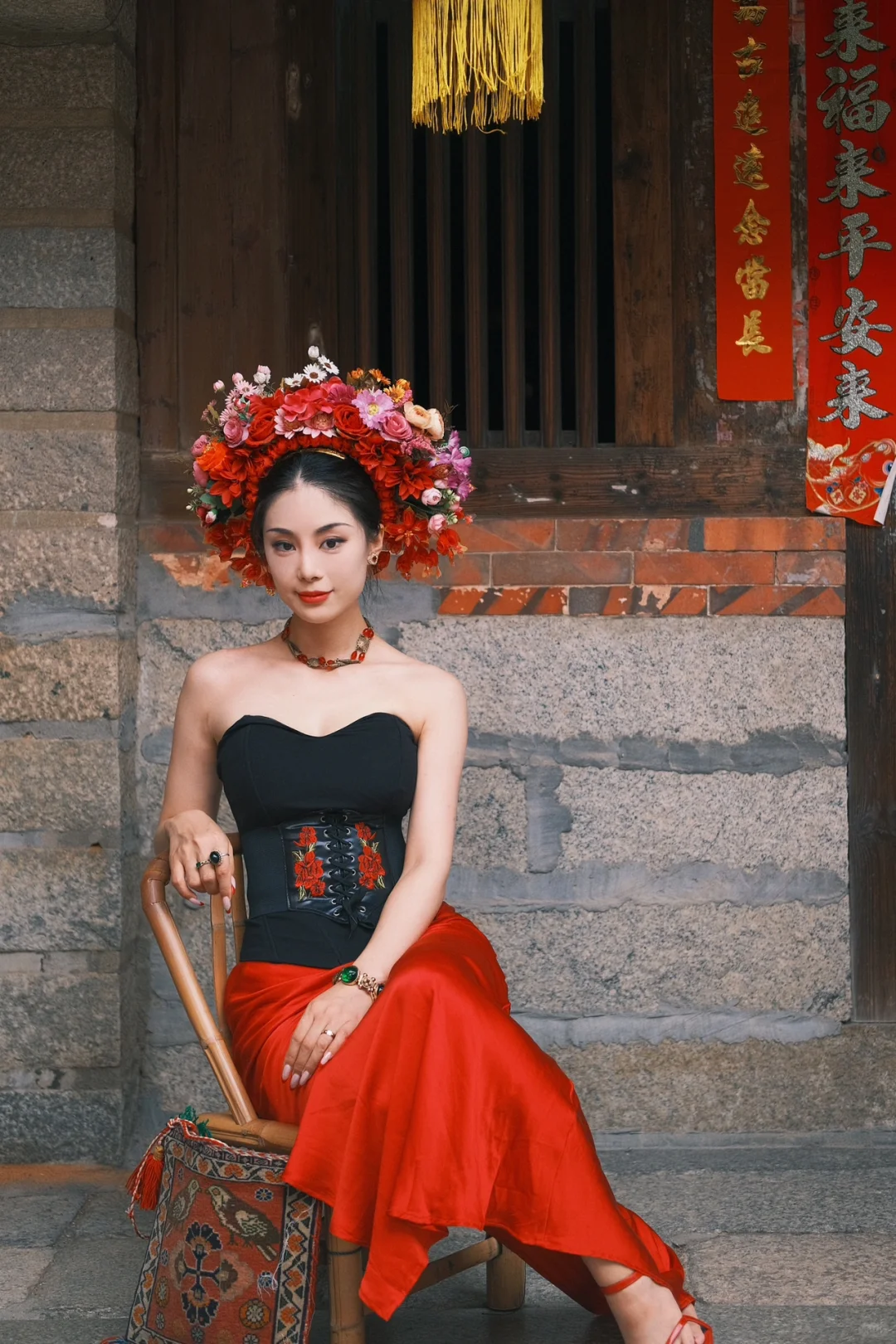 40块实现了赵丽颖同款簪花 不愧是国家非物质文化 真的太美了! 来泉州一定要尝试的玩法哈哈 我去的店铺 我是穿的自己的衣服 搭配了vintage首饰和包包 一路上被夸 店里约拍的摄影师也拍的好美呀 幸运之行!