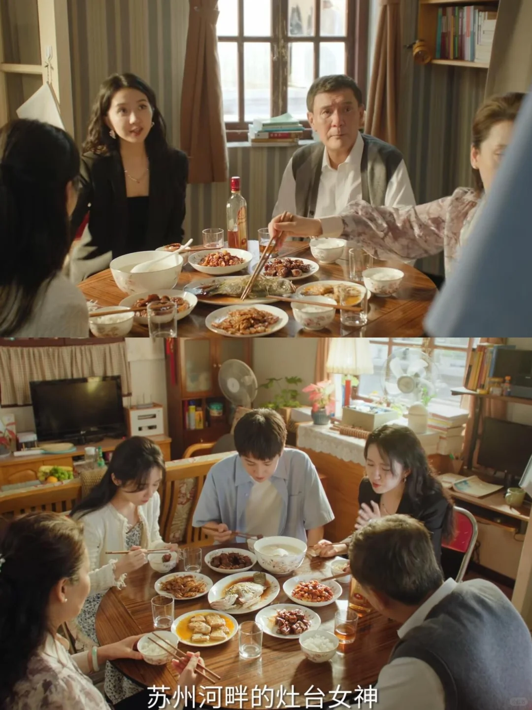 没错,说的就是《承欢记》! 别人都在磕cp,我却对着屏幕流口水😋(不是)! 🔸八宝辣🌶️酱→猪皮不能去掉,这样做出来更有嚼劲,还要再放些鸭胗鹅肝,那味道没得说; 🔹三虾🦐面→每年只有一个月能吃到,而且要用太湖的河虾,吃的时候要先搅拌开,才能更入味; 🔸爸爸做的小笼包,皮薄馅大,一口咬下去,一包汤,鲜得眉毛都掉了; 🔹听说老房子要拆迁,妈妈高兴得做了一大桌子菜,包括臭鳜鱼🐟这是徽州人过年必备的一道菜; 🔸承欢分手,奶奶带她去兴安里,吃了新研制的红烧肉,色泽红亮、肥而不腻,duangduang的,隔着屏幕都能感受到有多香! 🔹一起吃螃蟹🦀姚总要帮忙,奶奶婉拒,表示螃蟹就得自己拆,帮别人拆螃蟹,友谊的小船⛵要翻的。 🔸奶奶生病,崔叔带来了可口的饭菜,姚总说螃蟹和甜品🍰🧁只能二选一,奶奶选了螃蟹。 姚总又说,螃蟹寒凉,只能吃一个。 奶奶撇撇嘴:“一个螃蟹哪够塞牙缝。” 🔹奶奶虽然爱美食,但也“怕胖,锡兰奶茶要用脱脂奶🥛一只鲜肉月饼🥮的热量相当于四碗米饭 🔸承欢生气搬出去住,妈妈嘴上硬得很,心里却惦记女儿,包了荠菜馄饨,让爸爸带过去。 …… 还有腌笃鲜、熏鱼、黄金糕、粢饭团🍙糖醋小排、清蒸鲥鱼…… ➡️不是我说,你们吃就算了,还要用用如此充满诱惑的语言描述出来(我哭,馋的)[扯脸H] 说是全员“吃播”也不为过吧! ➡️就像奶奶说的:“心情不好的时候,要先填满胃,我们是饭饭🍚之交。” 嘻嘻~这真是一部香气扑鼻的剧啊![喝奶茶R] ➡️餐桌上,方寸之间,不只是用食物填饱肚子,更是治愈心灵、滋养灵魂的地方。 一年四季,一日三餐,相比于那些虚无的、缥缈的、不切实际的,人们大抵更愿意沉浸在这满满的“烟火气”里吧!