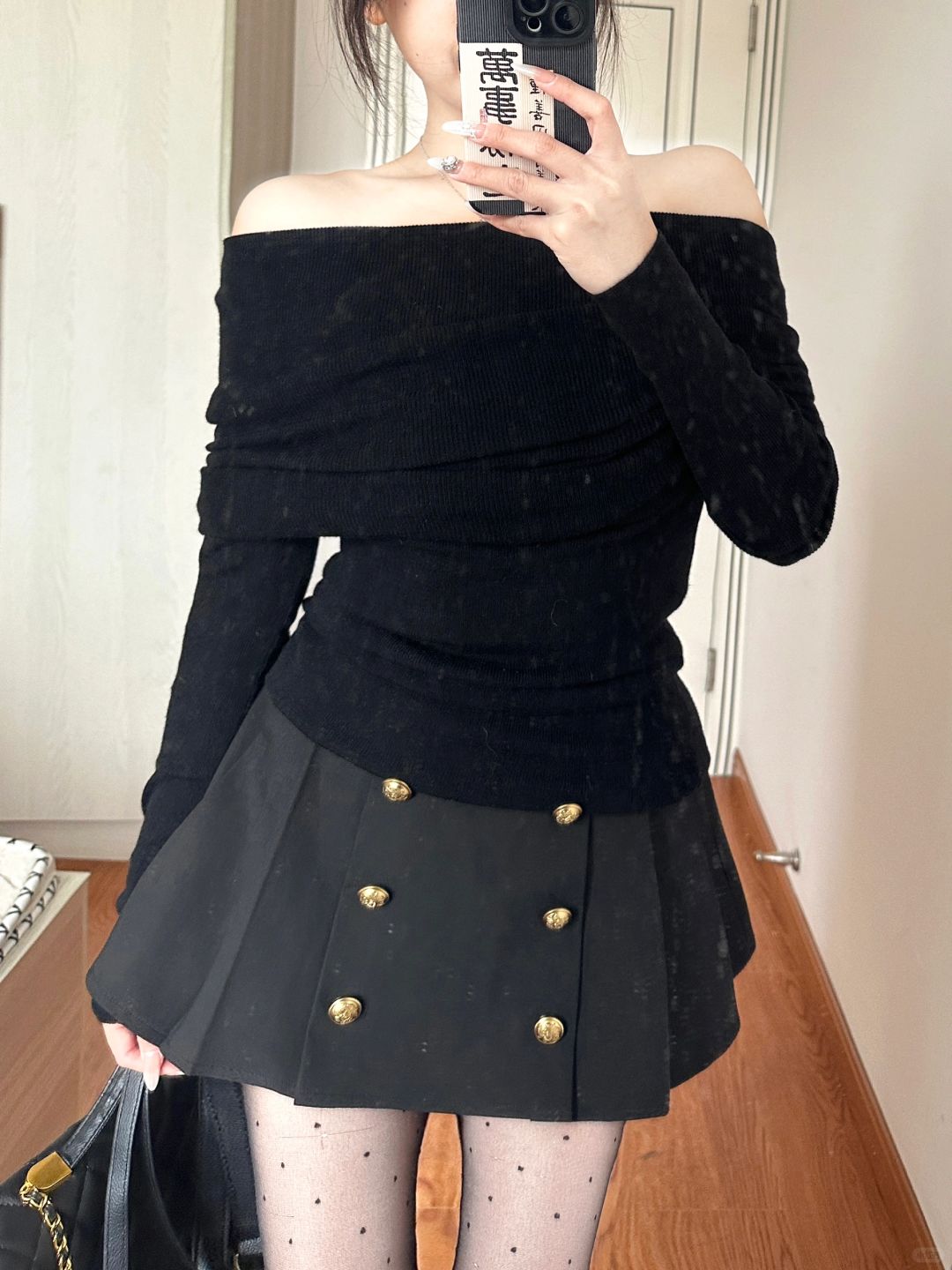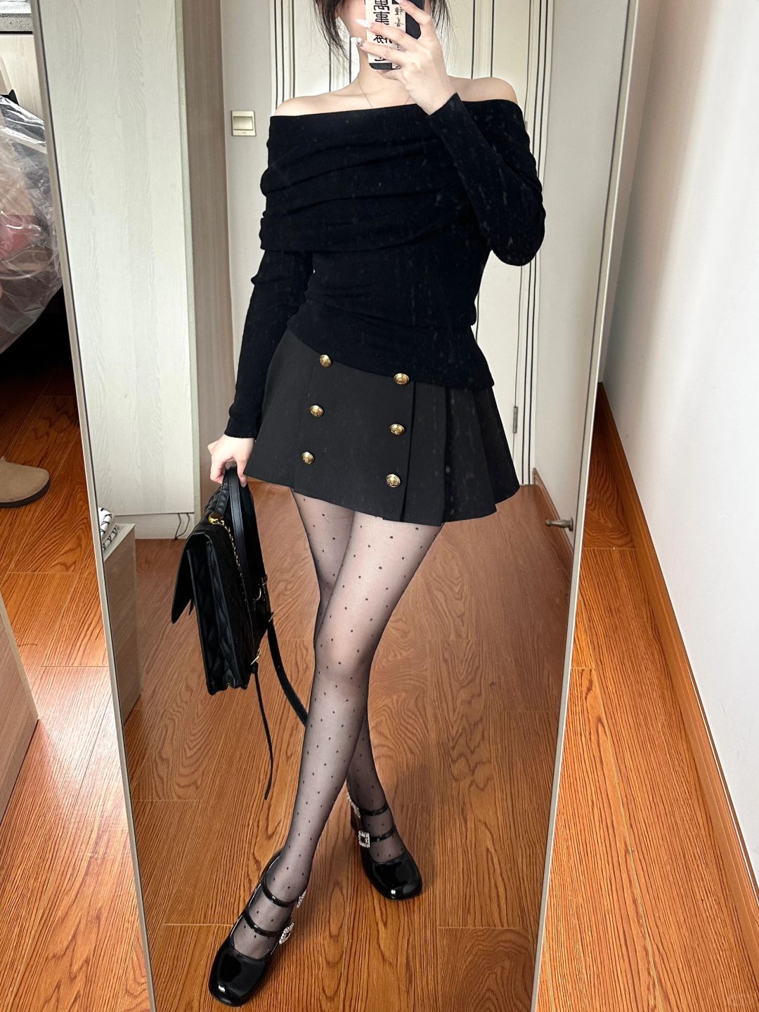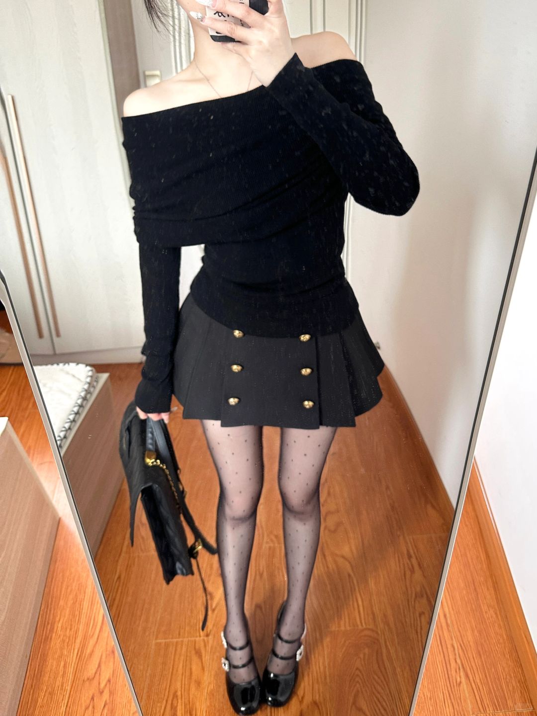 好爱的一字领露肩上衣!气质all black拿捏了!