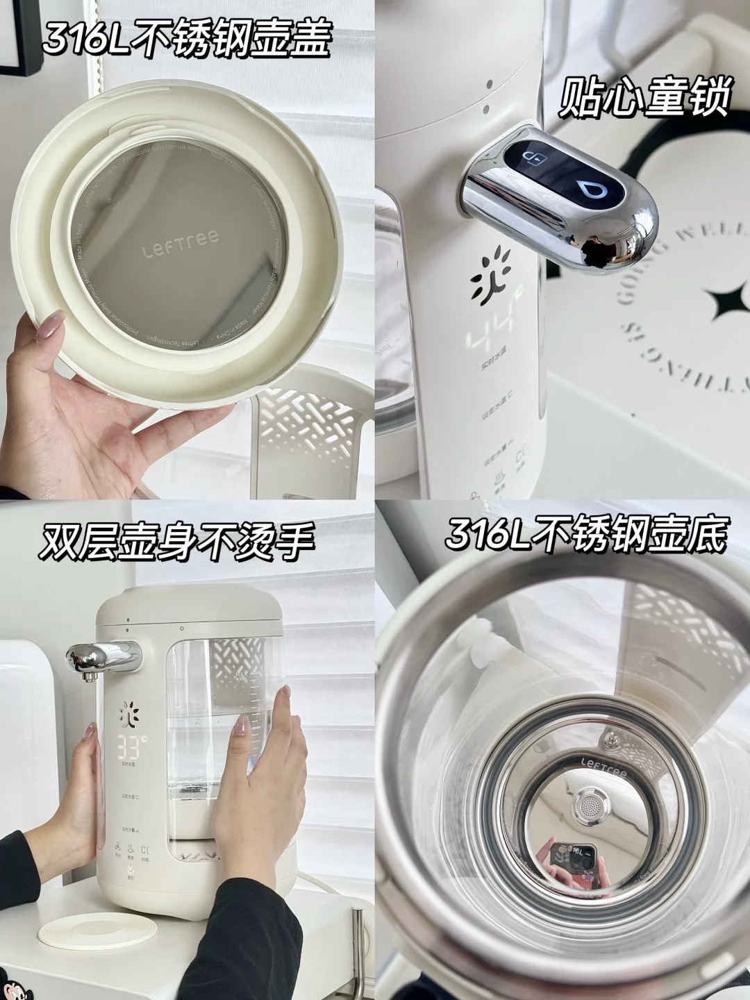 除此之外呢,它的壶底和壶盖也用的316L不锈钢,煮沸了也没有异味~