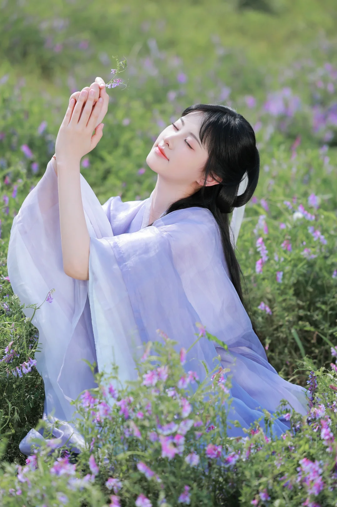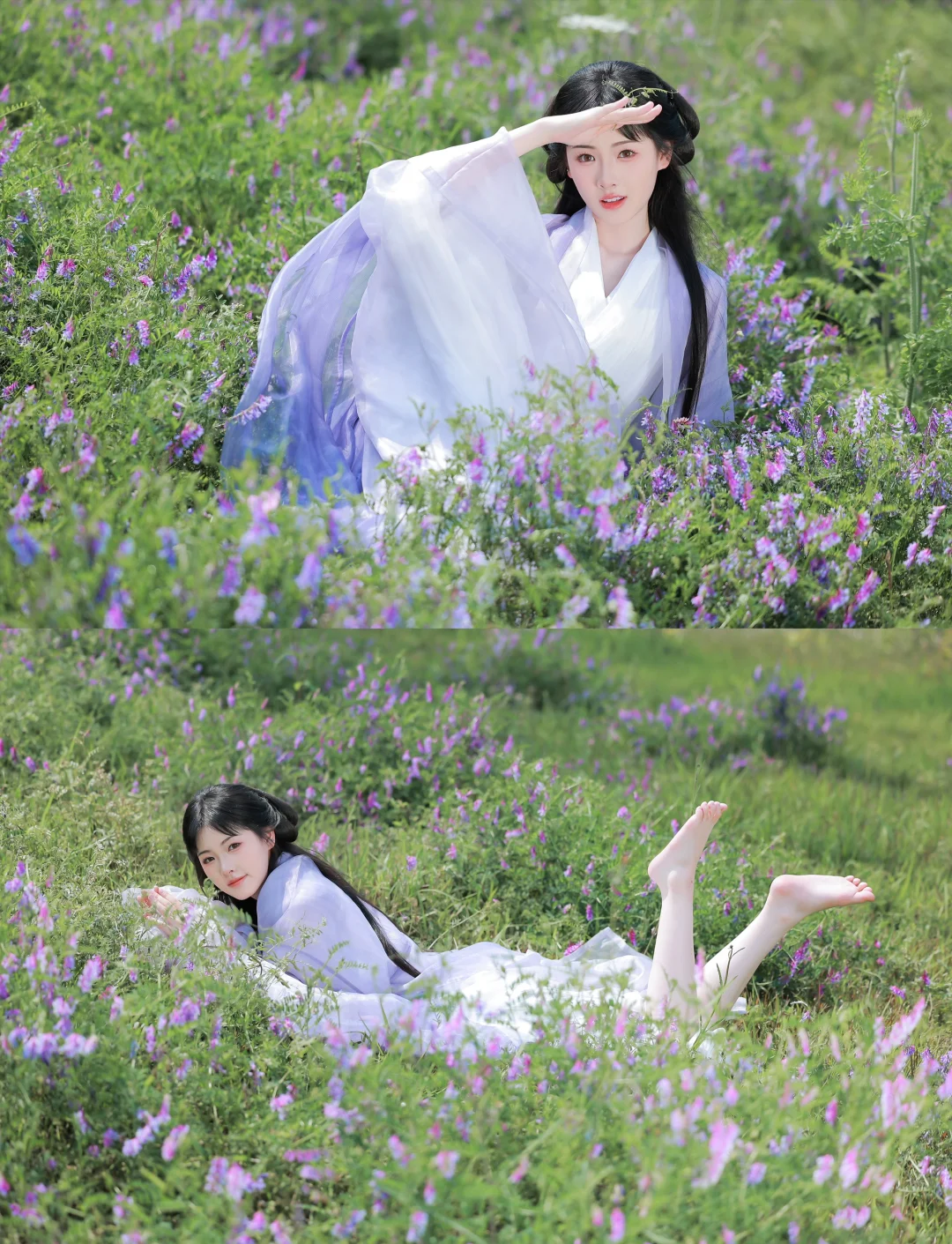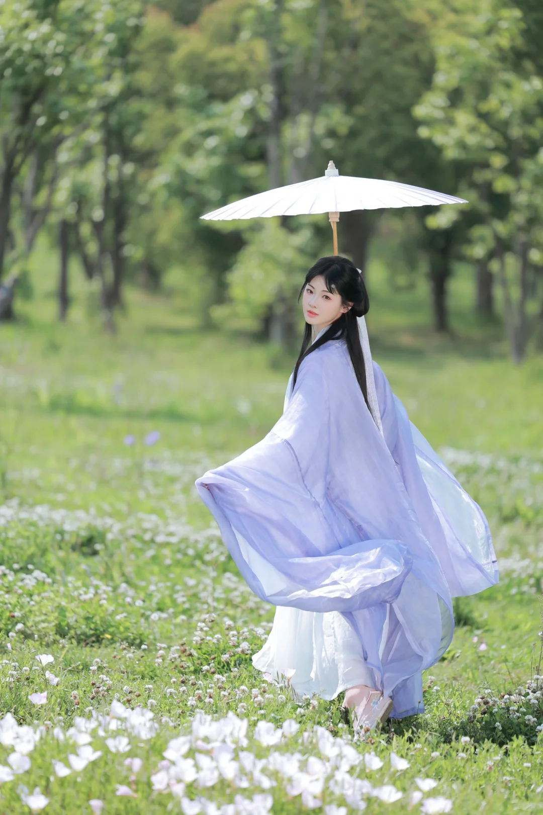 简简单单的公园草地也可以拍出好看的汉服照片啦! 摄影/子浔
