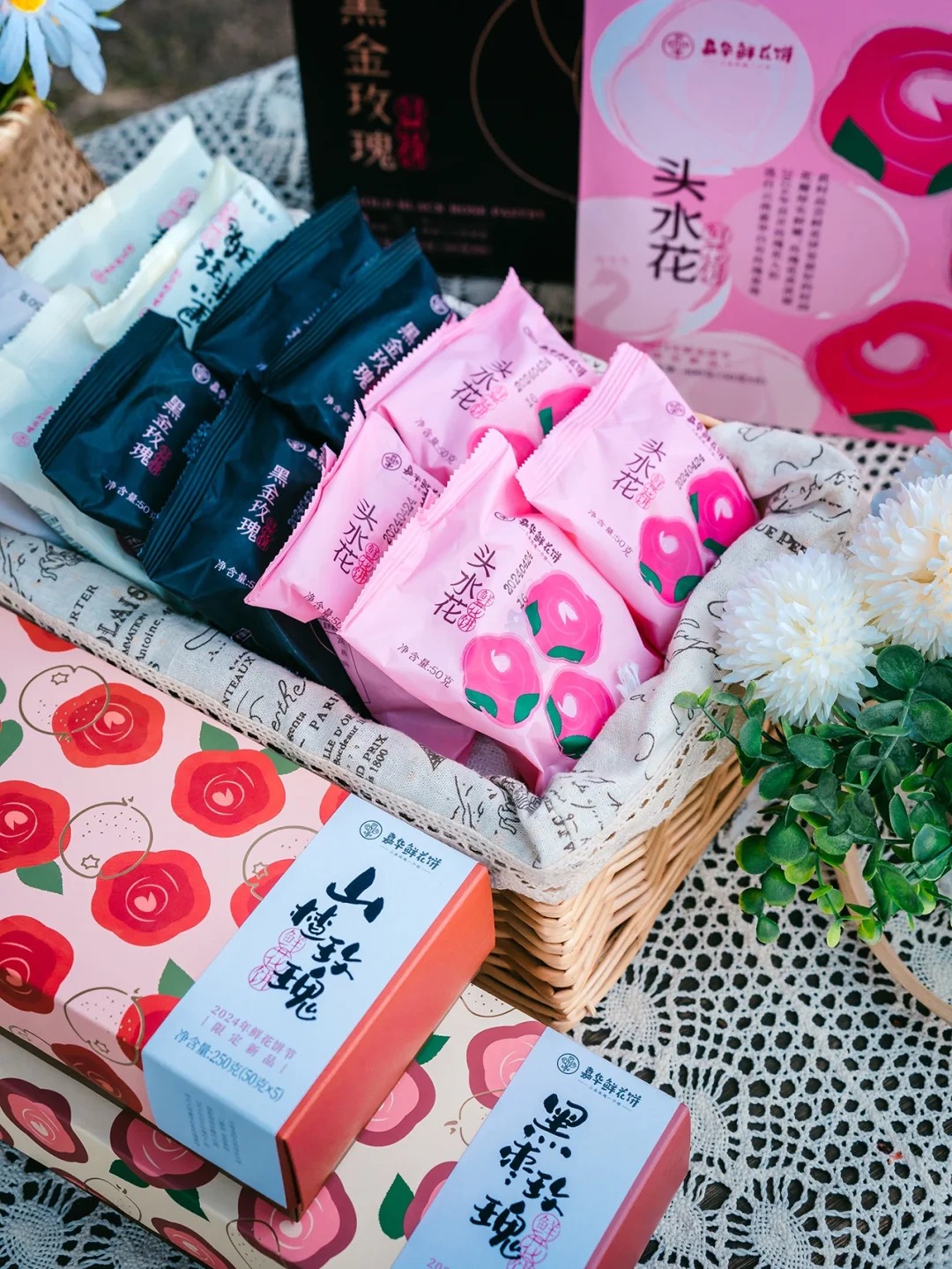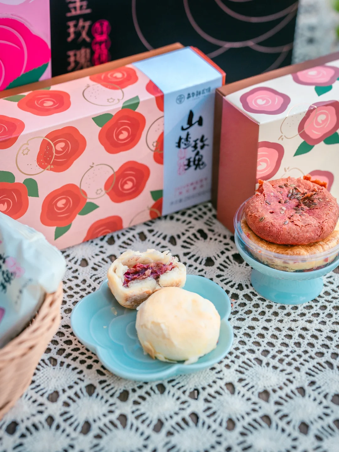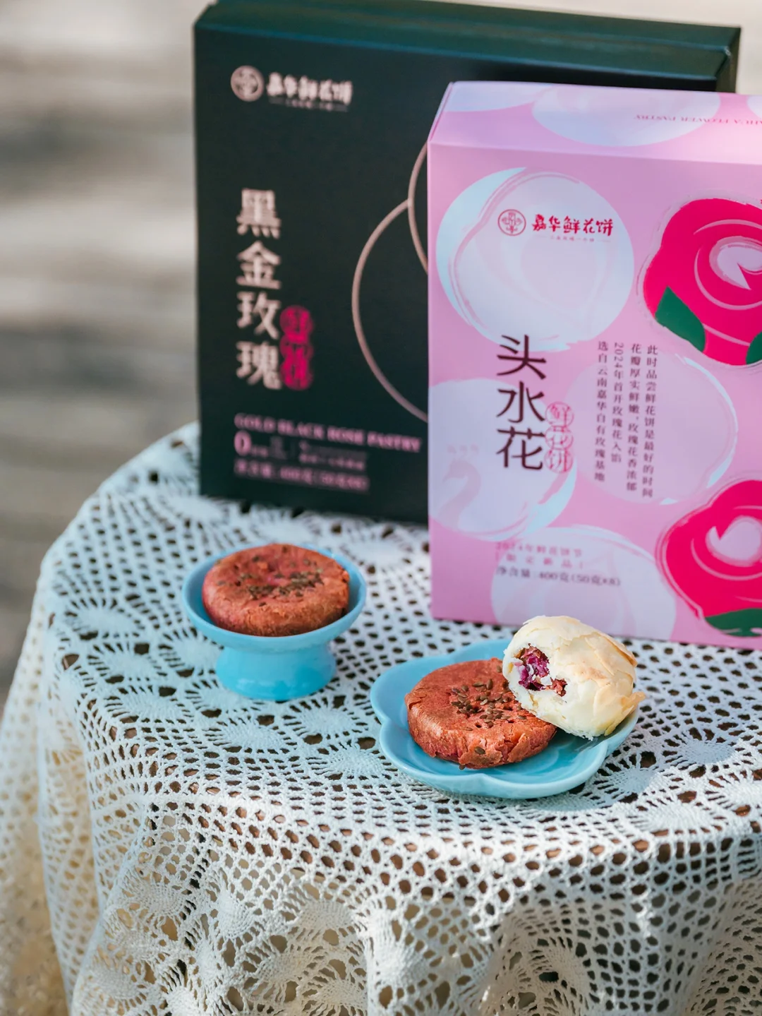 🥰今年还特别推出了限定的山楂玫瑰、黑刺玫瑰和黑金玫瑰饼,山楂玫瑰味道不错,酸酸甜甜!