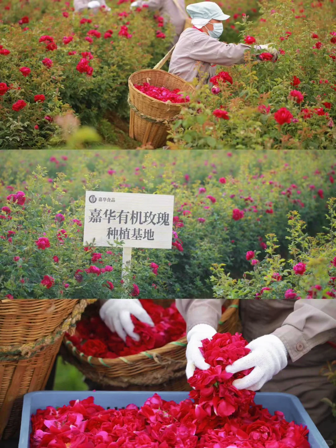 把从嘉华自家的有机玫瑰基地里第一批绽放的重瓣玫瑰8小时内制成馅料,再进行新鲜现烤,