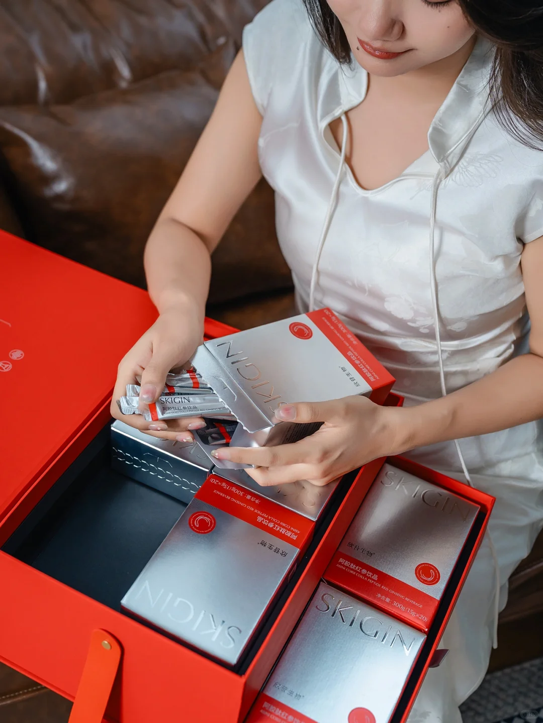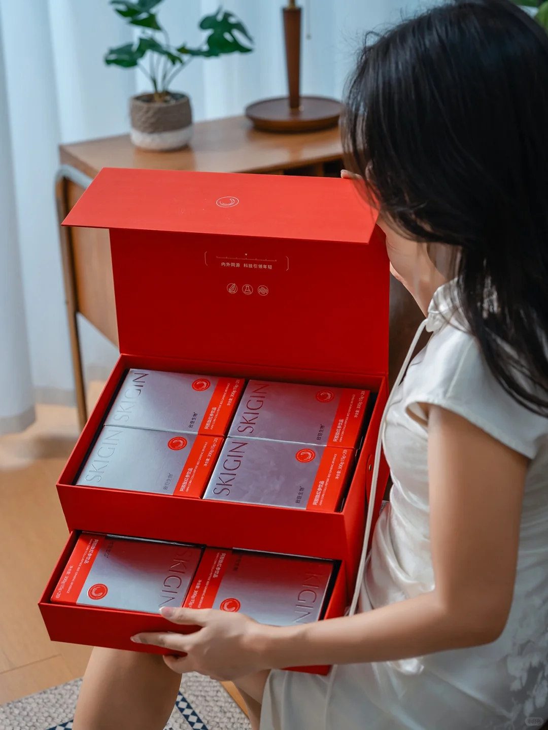 于是老婆就趁母亲节,直接挑了一个SIKIGIN欣苷阿胶红参饮礼盒送给我妈,也是在章小慧的直播间种草的,特别适合女性可以方方面面补到位,大红色的礼盒非常的有质感,实用的同时又把仪式感拿捏的死死的!