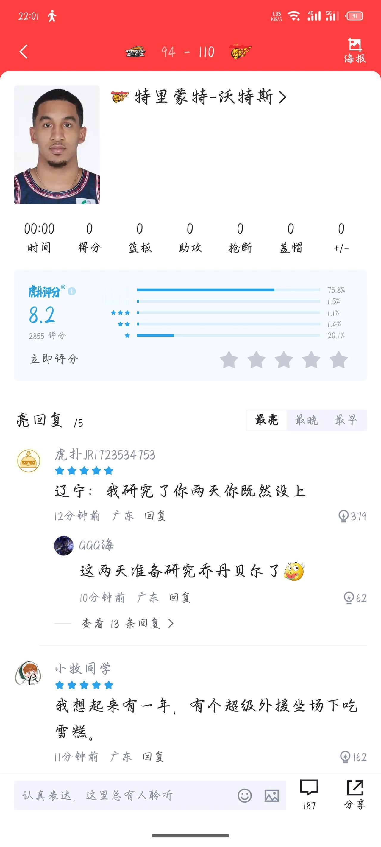 昨天比赛,杜峰最显示其水平的两个变招:沃特斯一分钟没上和重用18岁的小将李奕臻。 辽宁必须面对的选择题是:沃特斯上场和不上场的时候各自需要怎么打,