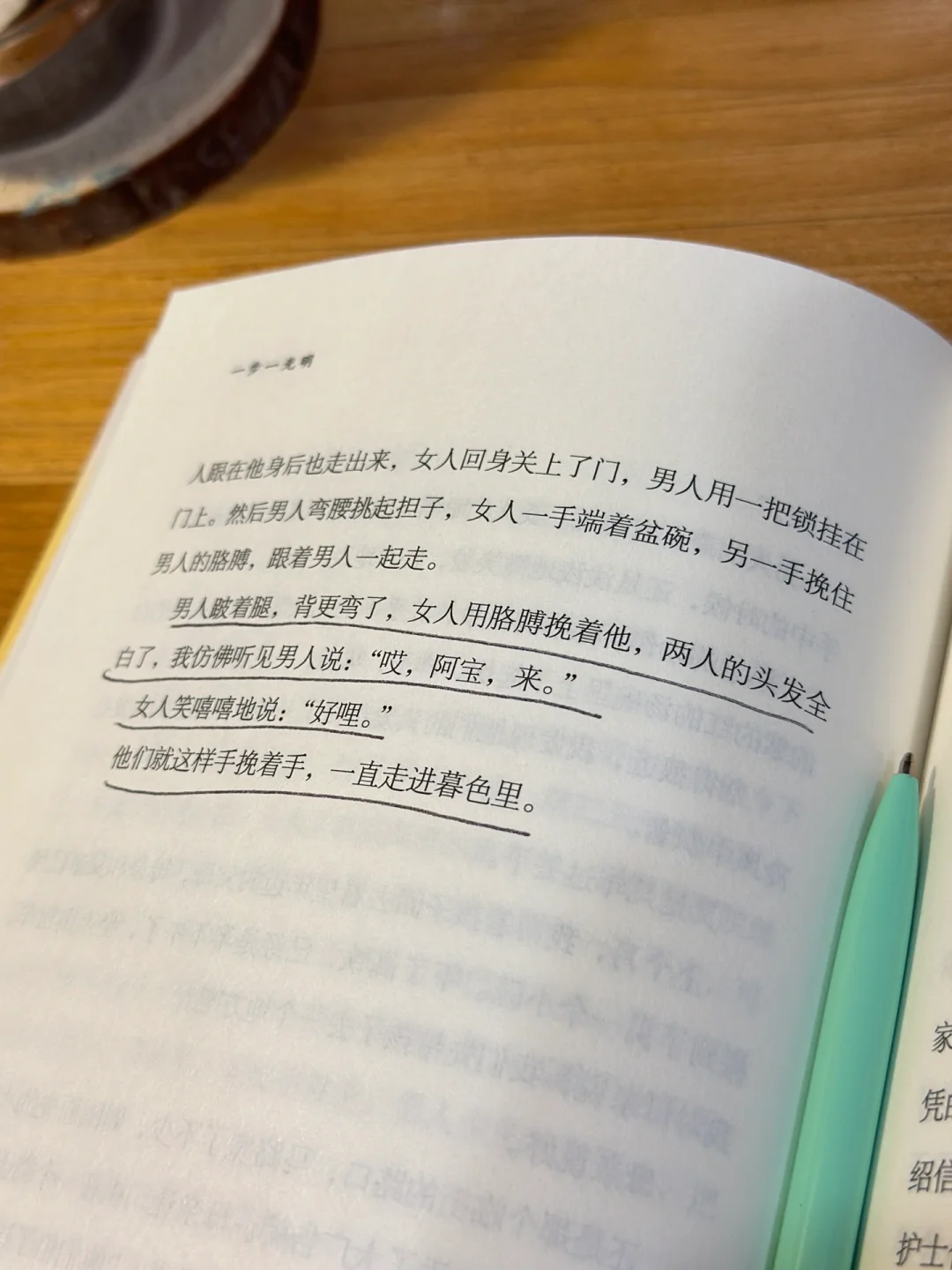 🌿馄饨摊的男人跛着腿,背更弯了,女人搀扶着,两人的头发全白了,他们就这样手挽着手,一直走进暮色里。