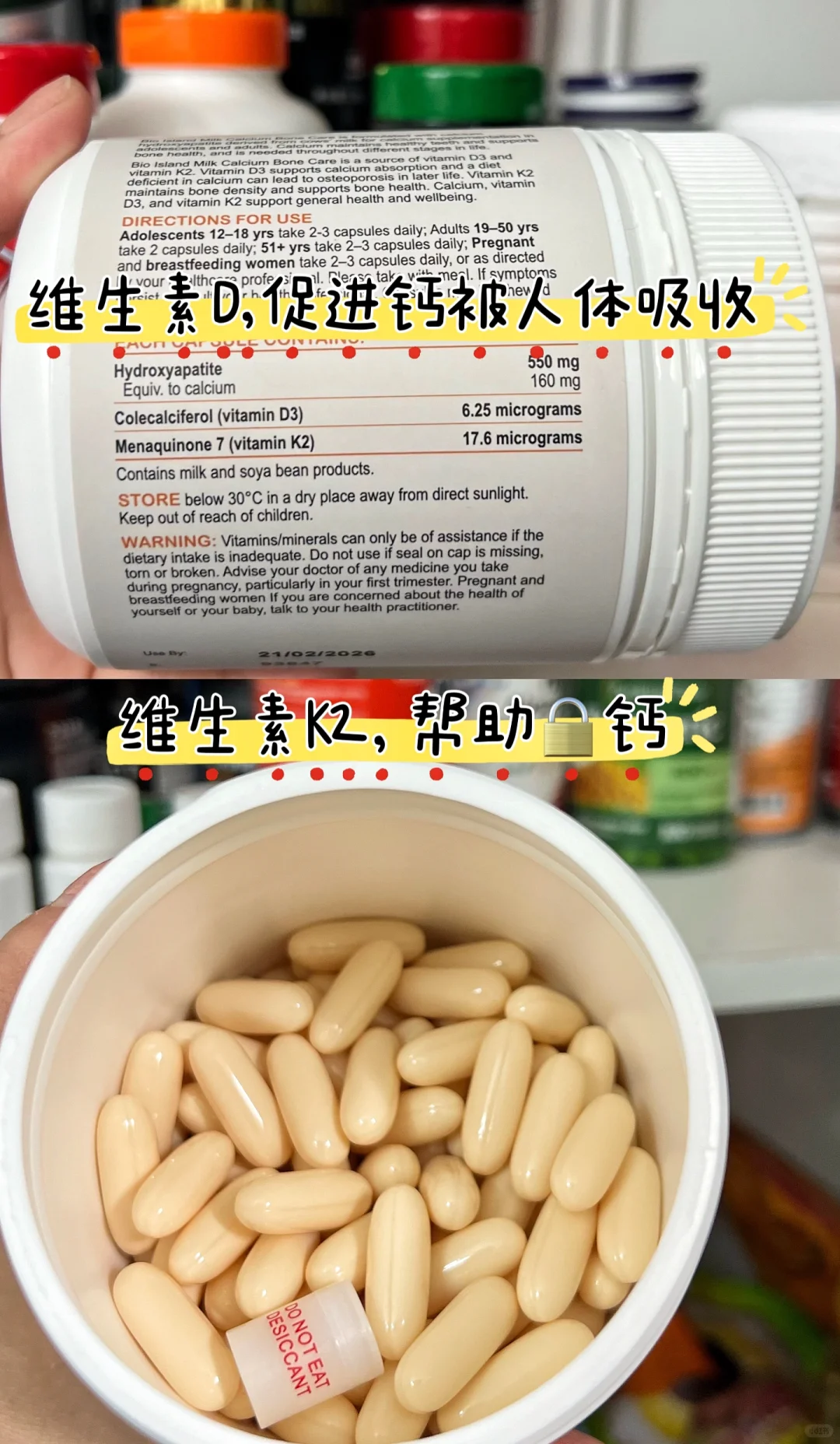 保持好的身体状态⛹🏻‍♀️是我们所追求的,但很多人不知道的是,“抗衰先养骨” 数据表明,当我们遭遇“断崖式衰老”时,骨含量也呈滑铁卢般下降⤵️ 我比较推崇食补,从内而外去养骨。🦐虾皮,💜紫菜,🖤黑木耳,🥩牛肉都是不错的选择。 但随着年龄的增长⤴️,对钙的需求也会逐渐增长⤴️,食补让人力不从心补钙 这个时候选择钙片其实更方便🤫 bioisland成人乳钙 是我在用的,它是乳钙,不伤肠胃好吸收(吸收率达到70%)。还含有维生素K2,帮忙🔒住体内钙质。