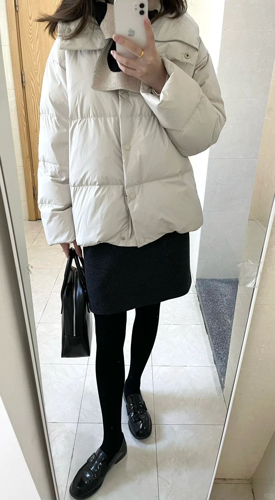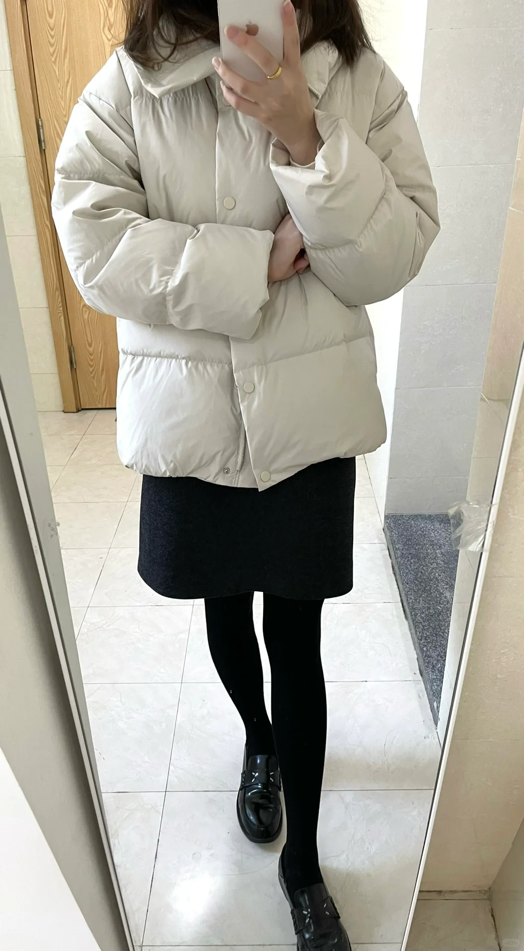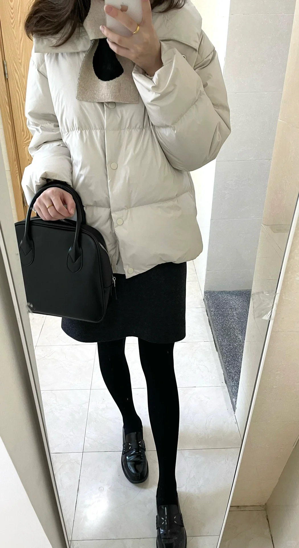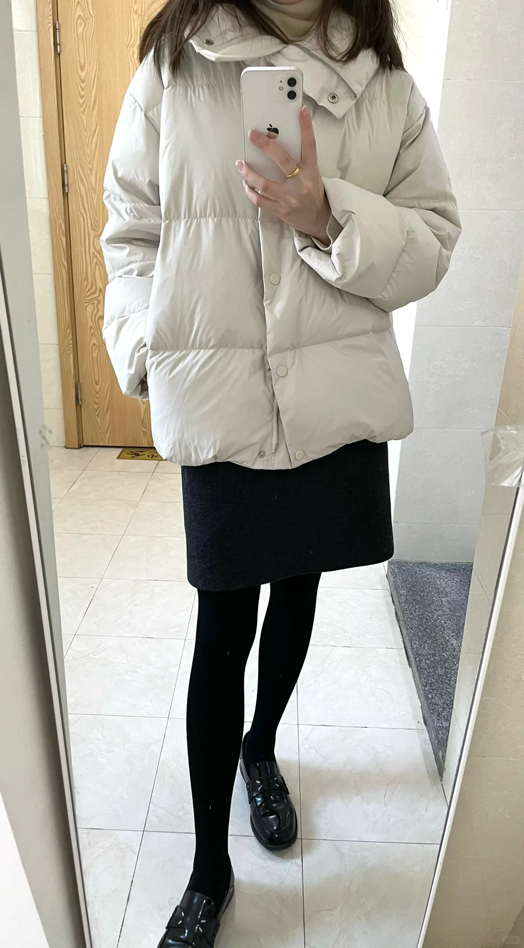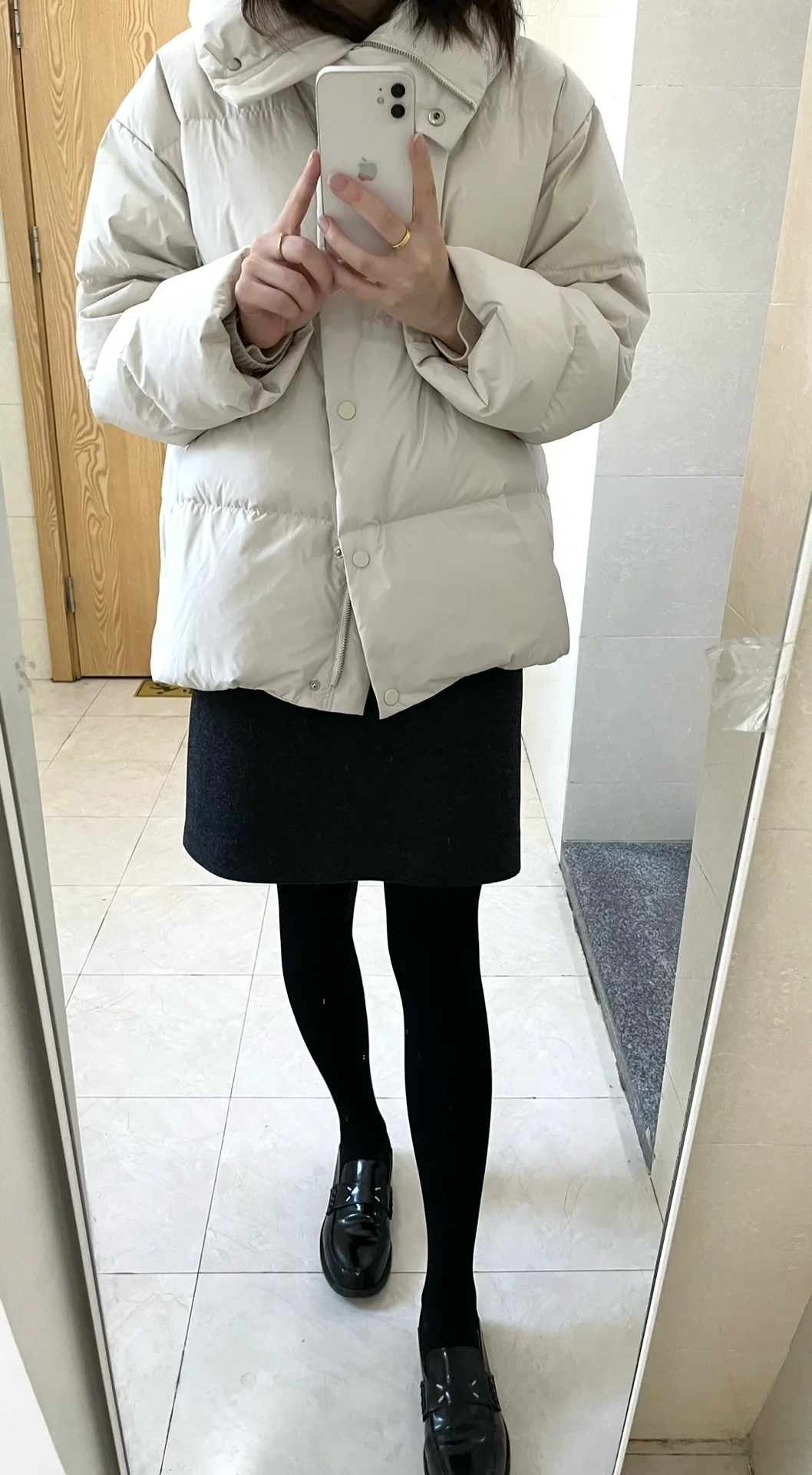 通勤试试羽绒服配短裙吧🥳 因为在室外的时间很少 室内有暖气脱外套也不会冷