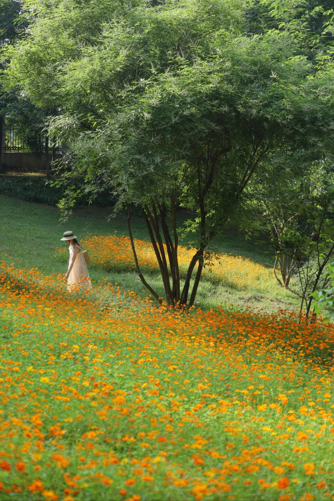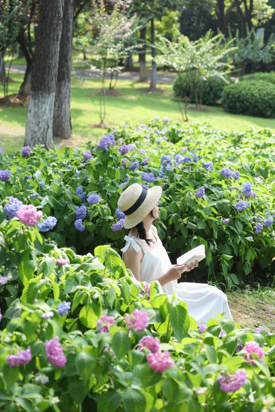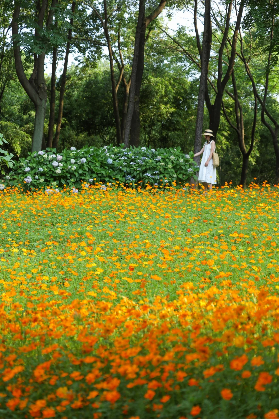 武汉这个公园也太宝藏啦 大片无尽夏绣球正盛开 过几天是zui佳观赏期 还有一大片治愈的草坪可以野餐 草坪中央有一颗很美的合欢树 还有一片小黄花油画花海 真的太美了😭 📍汤湖公园 📝绣球在正门右边,小黄花在正门左边