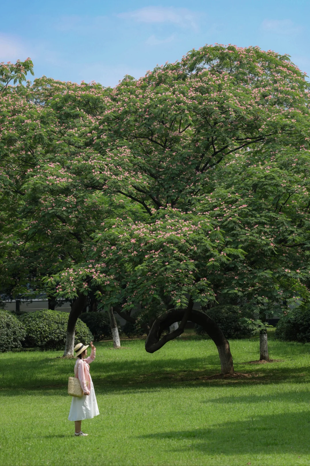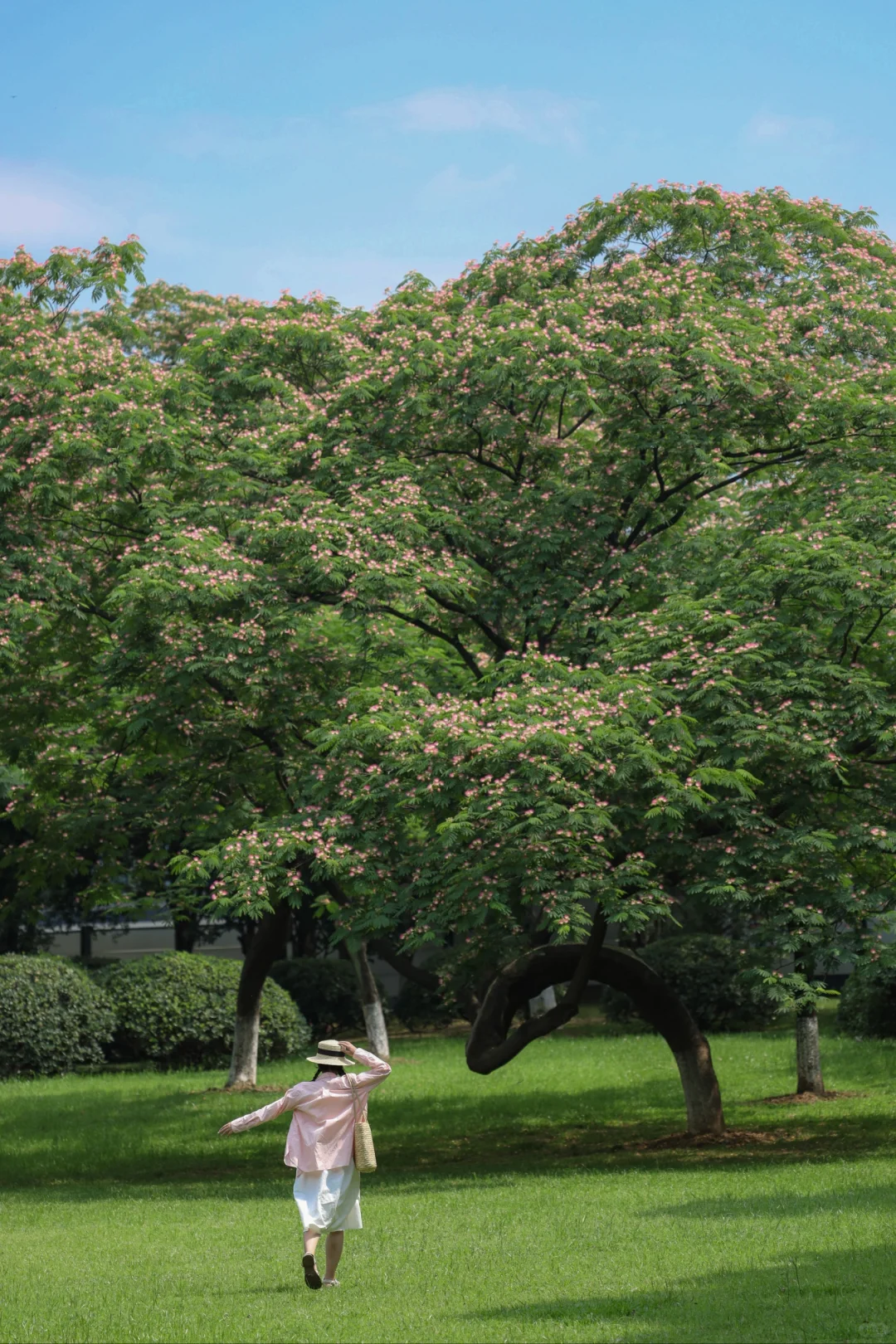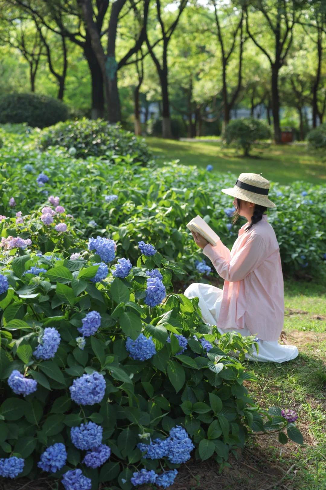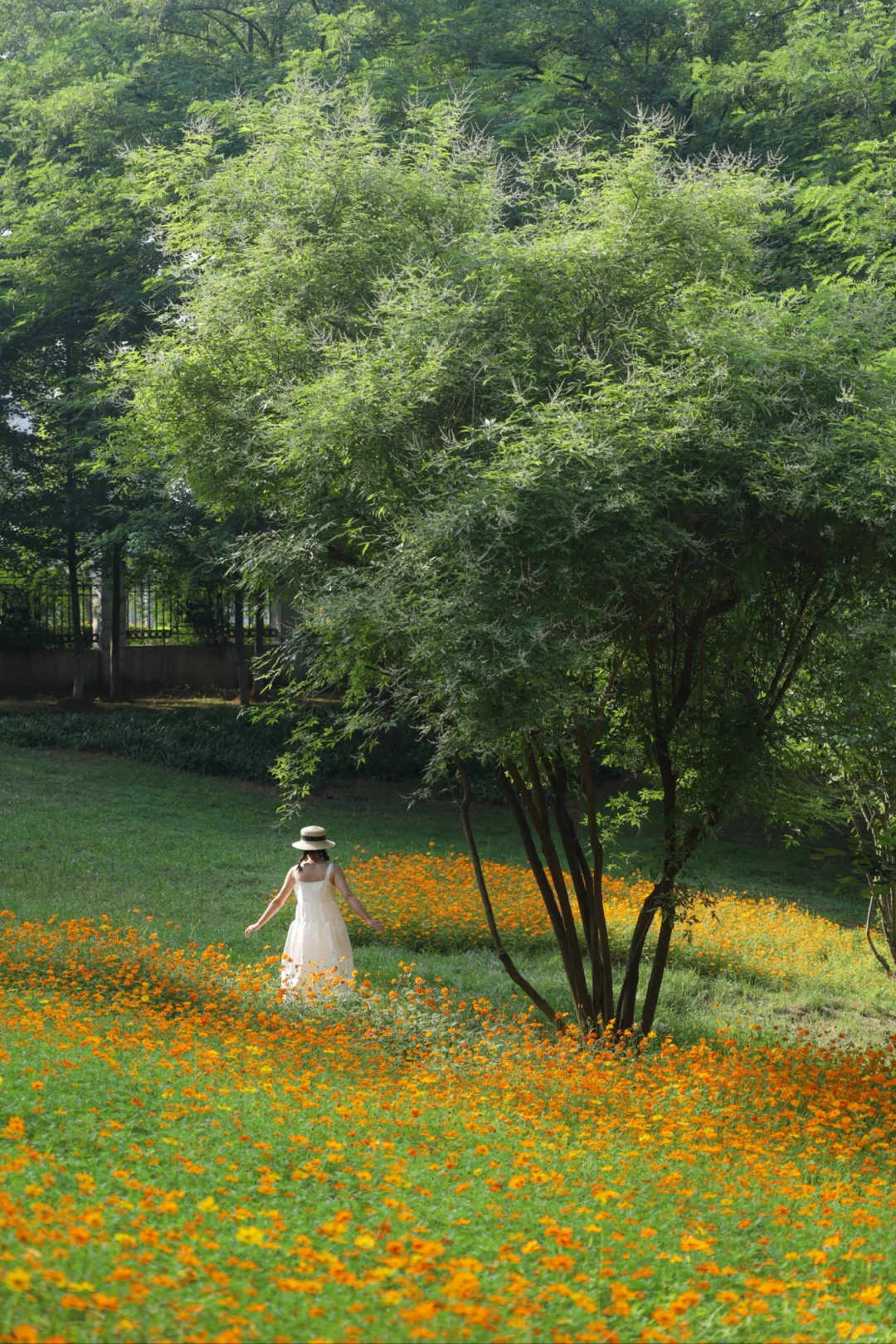 武汉这个公园也太宝藏啦 大片无尽夏绣球正盛开 过几天是zui佳观赏期 还有一大片治愈的草坪可以野餐 草坪中央有一颗很美的合欢树 还有一片小黄花油画花海 真的太美了😭 📍汤湖公园 📝绣球在正门右边,小黄花在正门左边