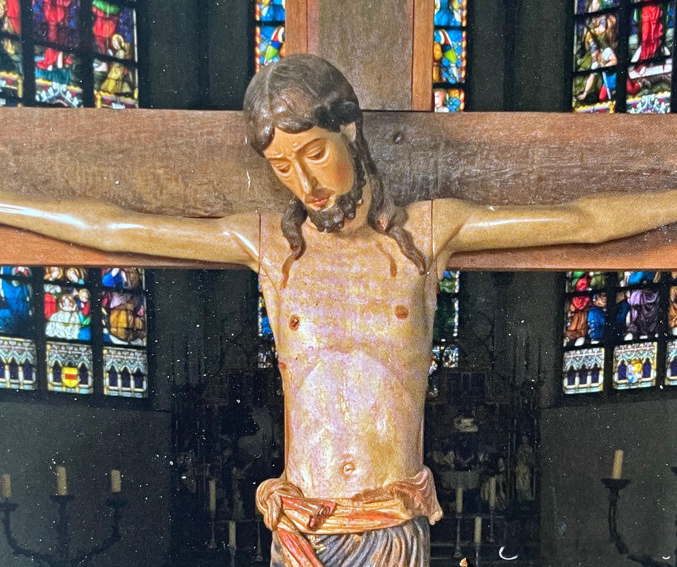 卡彭伯格早期普雷蒙特雷修会修道院的十字架可能完成于13世纪早期,这件作品之所以特殊,不仅是因为抹油上光,受苦的基督更传递着罗马式艺术中凯旋十字架的救赎概念。这显示此作品位于一个过渡阶段:立于脚座的站姿与四根钉子仍旧属于战胜死亡的罗马式主题,但痛苦的表情与人类苦难则是下一个时期的内容。眼睛的处理方式也与此有关,雕刻时可能是张开的,彩绘时却让眼睛闭上了。