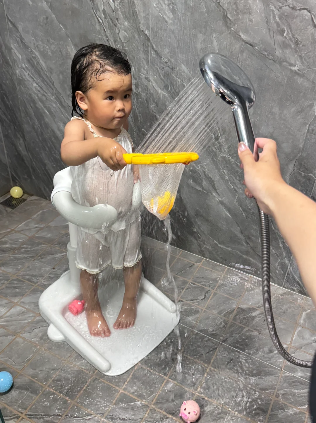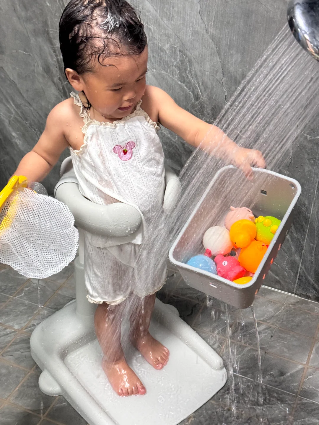 这洗澡器绝了!可调节高度太人性化了,肉娃瘦娃都能用,真心推荐