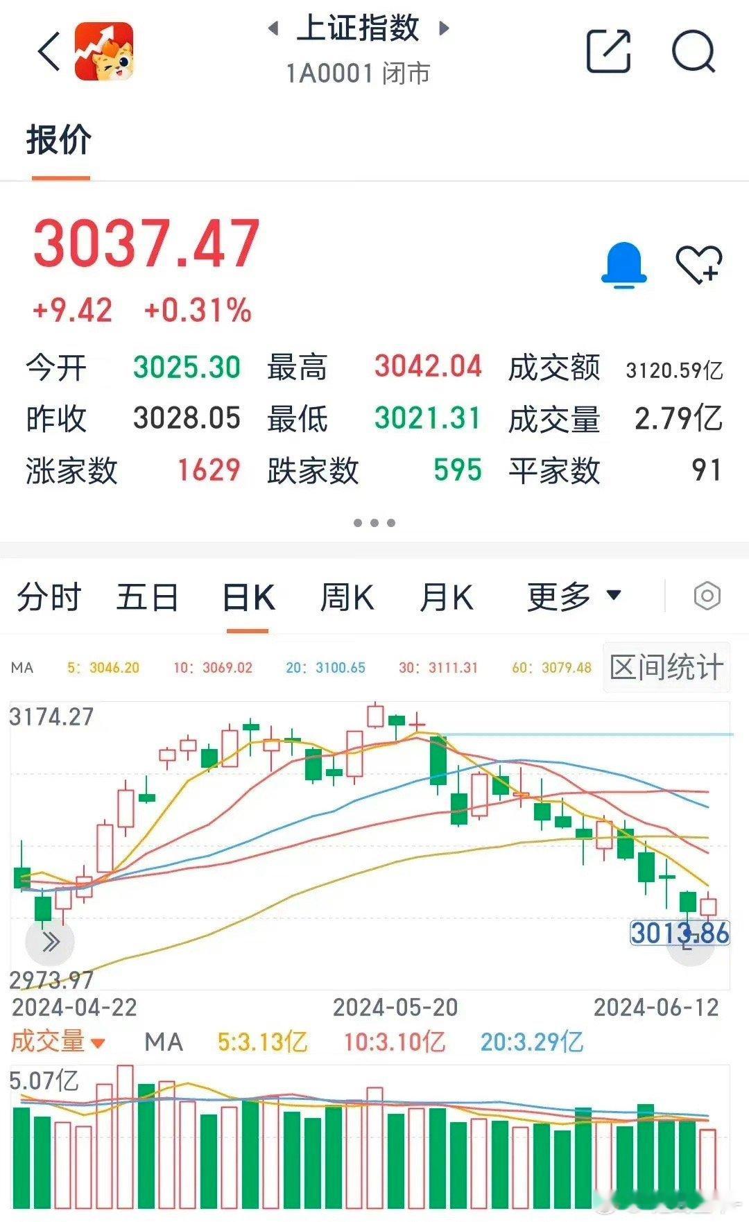 今天上证指数止跌回升,大盘没有下探3000点的支撑力度,而是稍有下探便缓慢上攻。