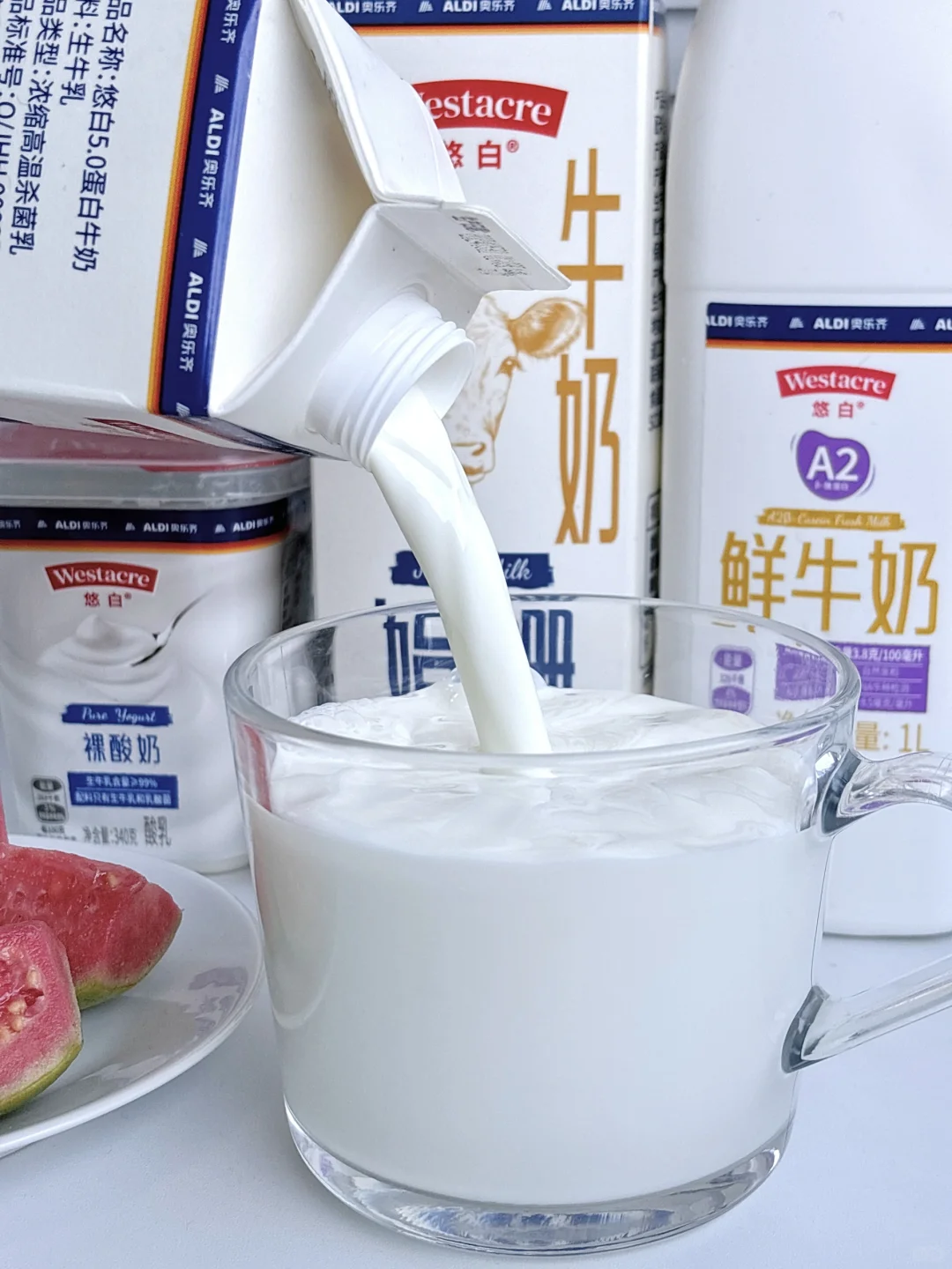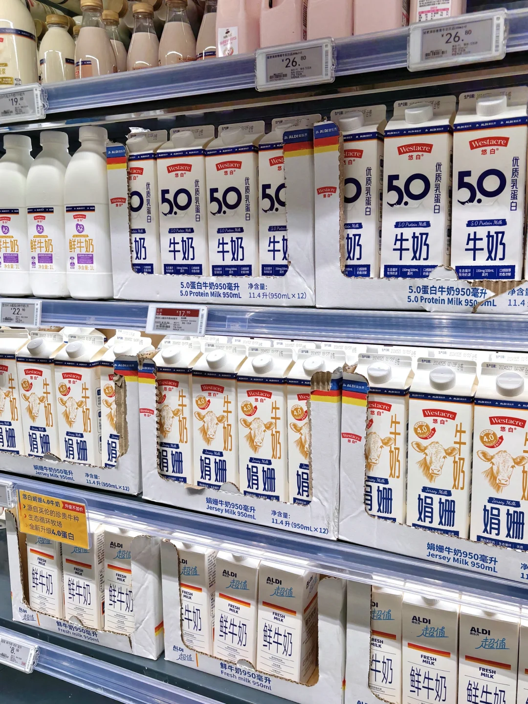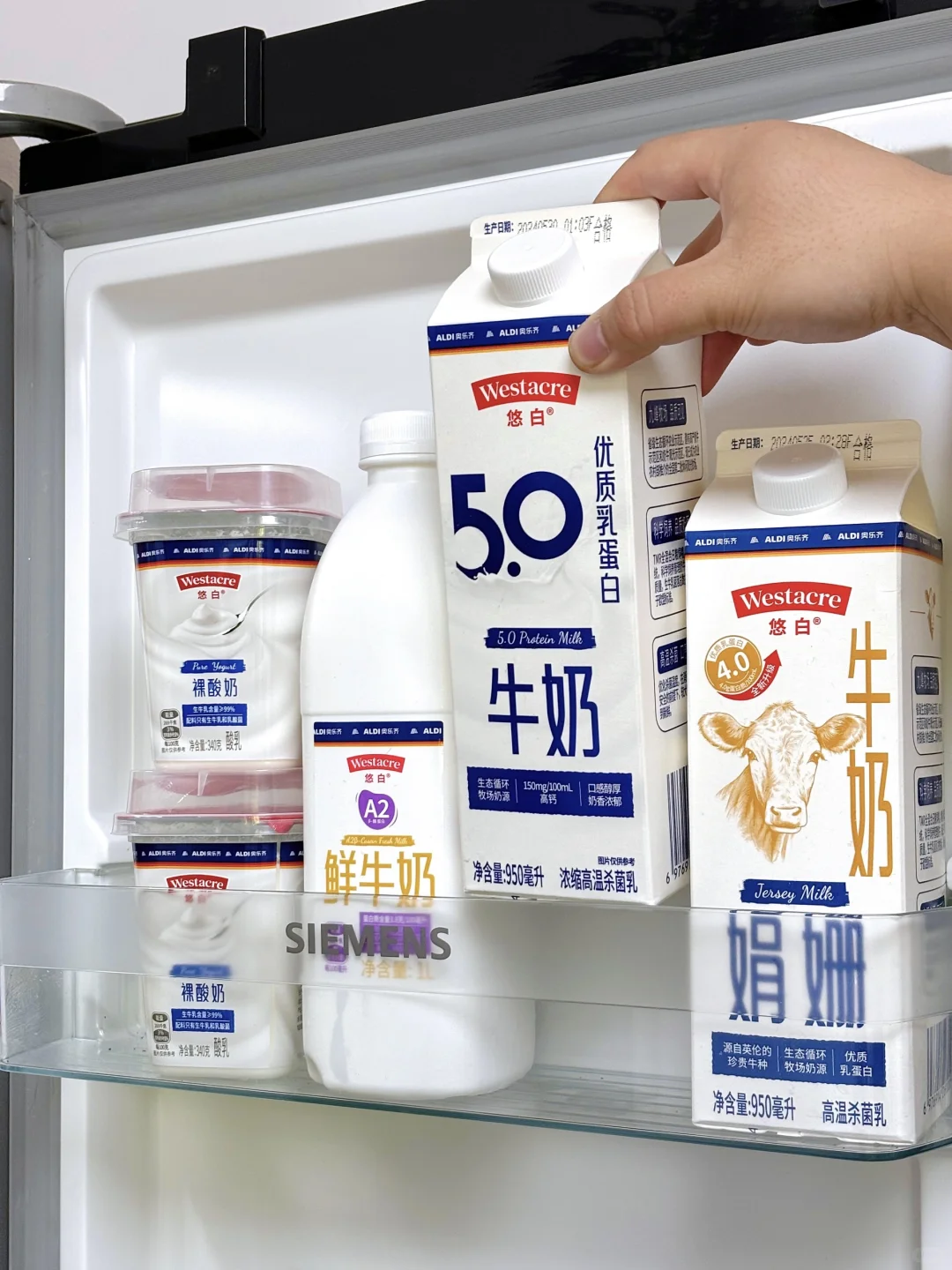 跟风买了几款奥乐齐自牌悠白牛奶